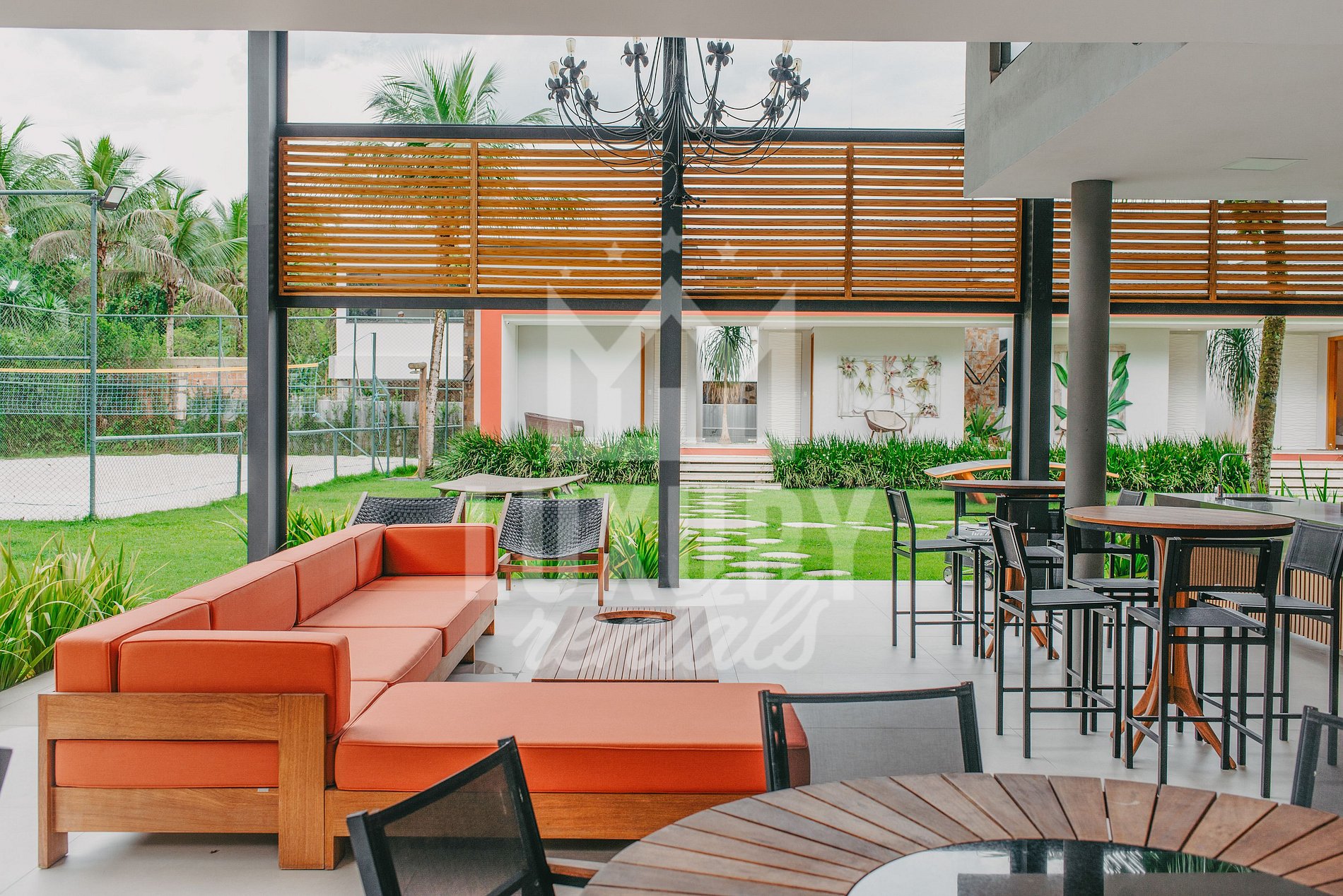 Na Área Externa temos uma Perfeita Área Gourmet integrada com Área de Lazer, Piscina, Sauna, Jacuzzi, Sala de Jogos, Quintal com Gramado, Quadra de Areia, Campo de Futebol, Futmesa, Rede de Futevôlei e Conexão direta com a Natureza tendo seus Coqueiros e Palmeira em volta.