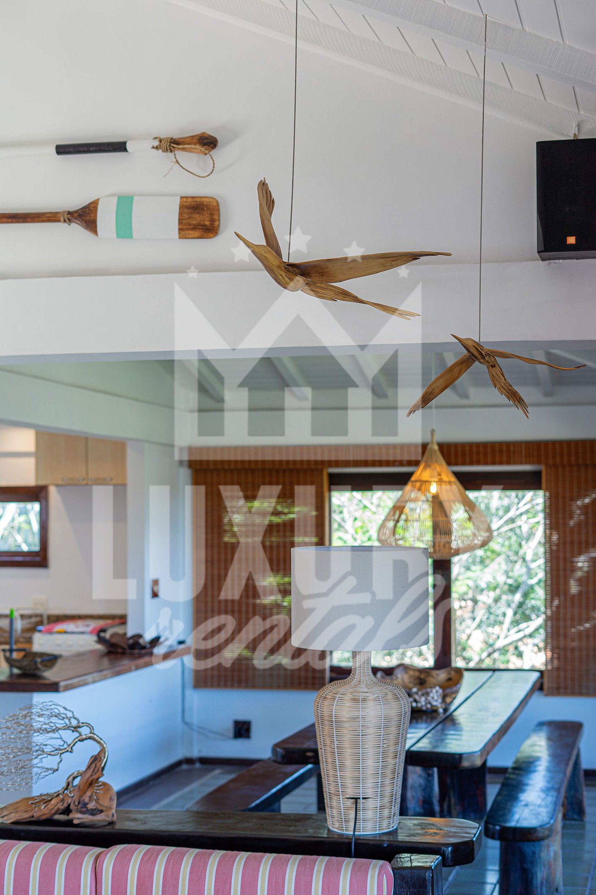 A Sua Área interna é composta com uma Sala de Estar toda Avarandada com Vista para Praia de Manguinhos, Sala de Tv, Sala de Jantar e rede Wi-Fi que abrange toda a casa.