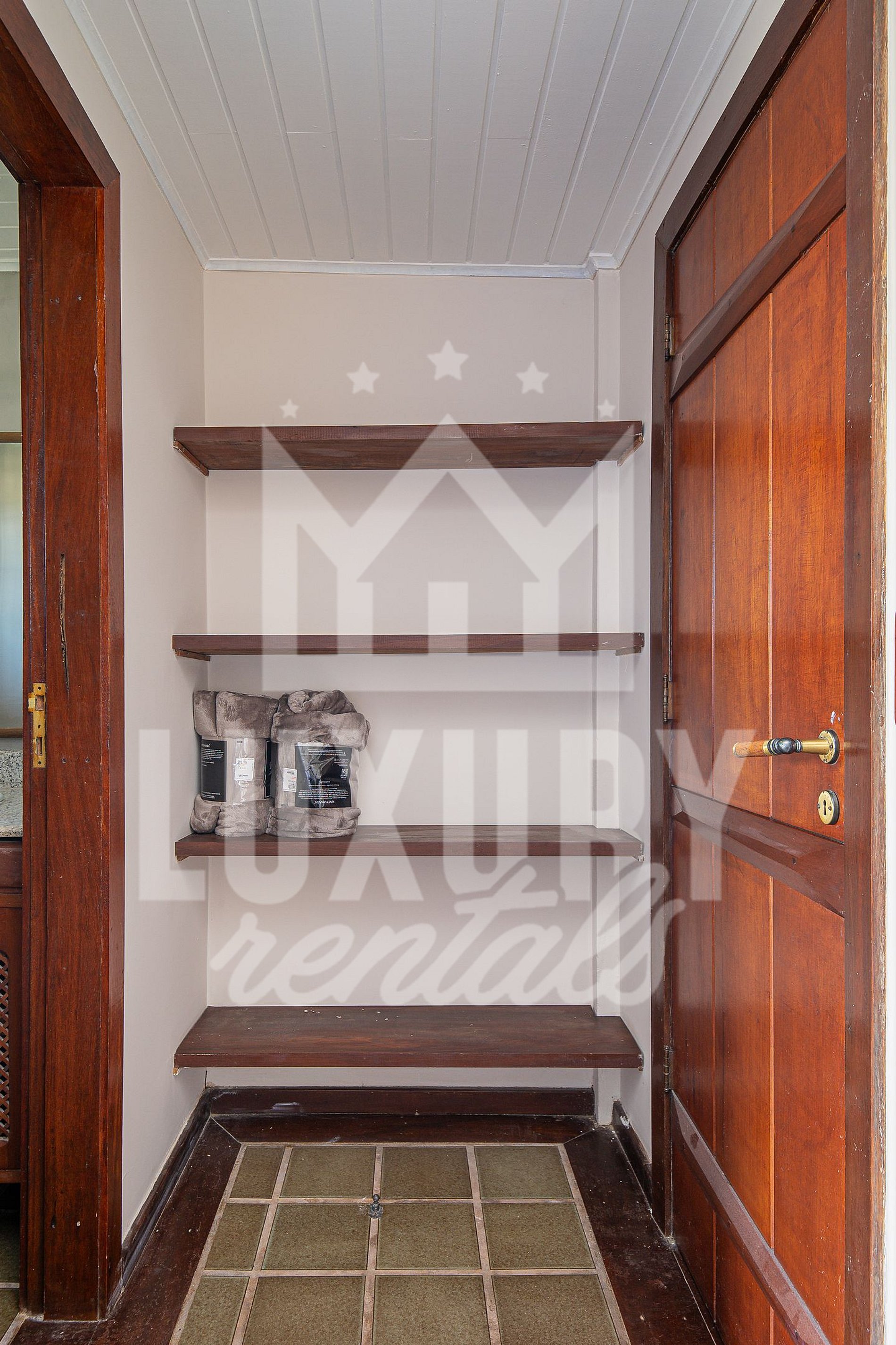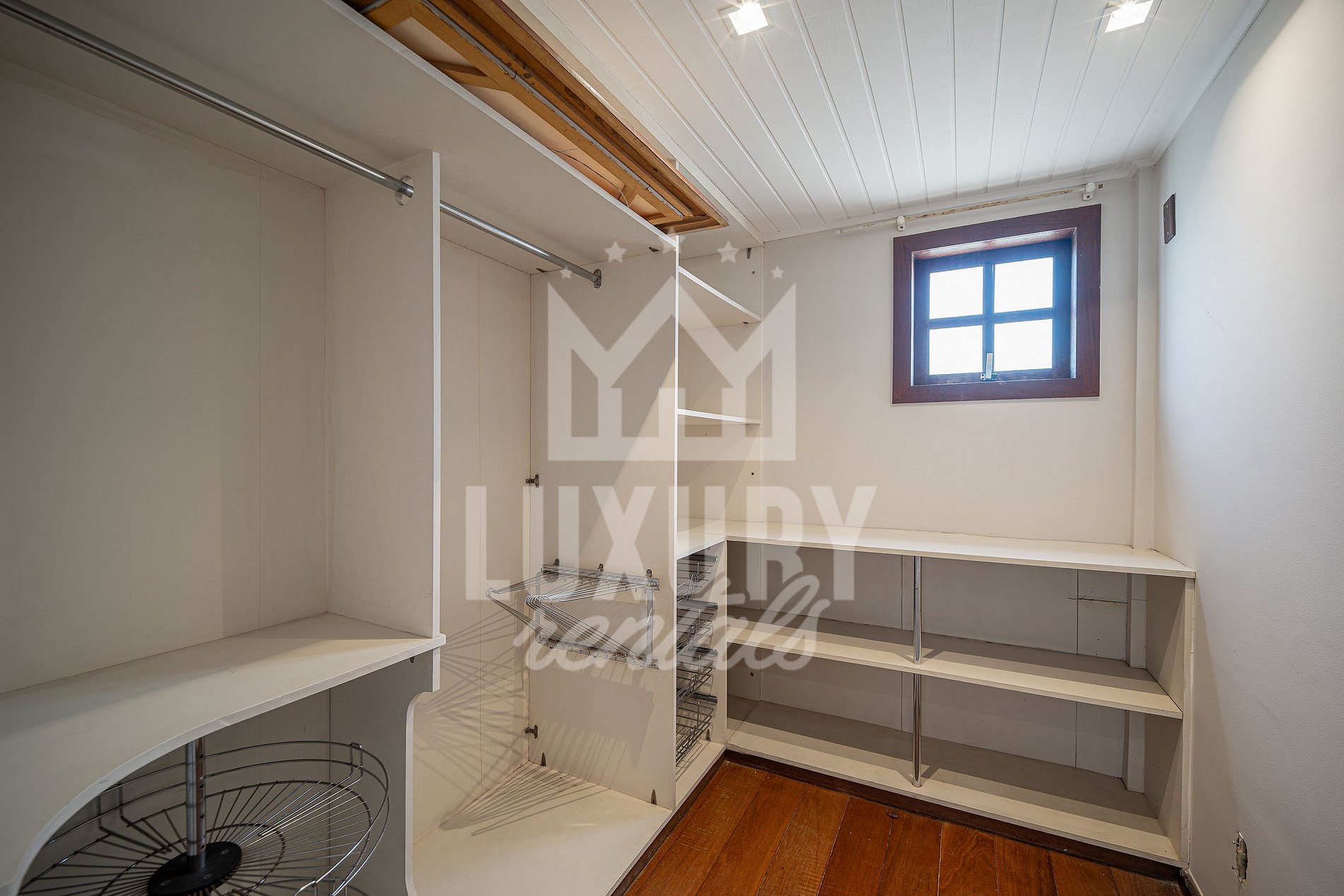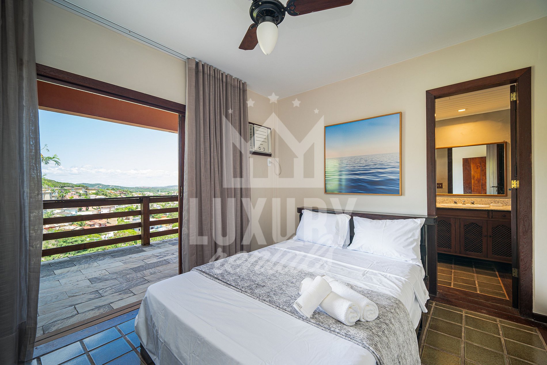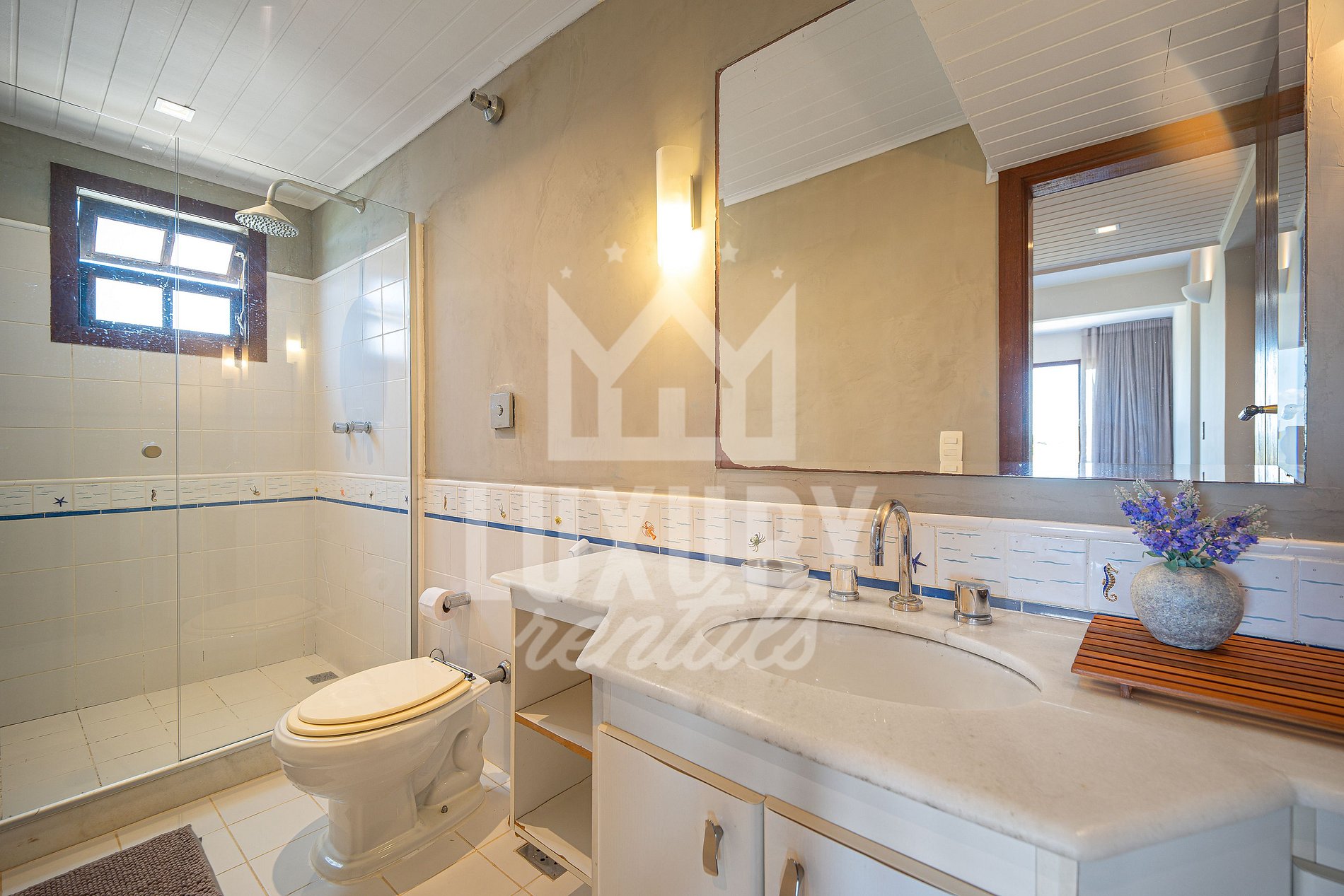 A Casa é composta por Quatro Suítes, sendo uma Suíte Master com Closet; Todas com Ar Condicionado, Roupas de Cama e Banho.