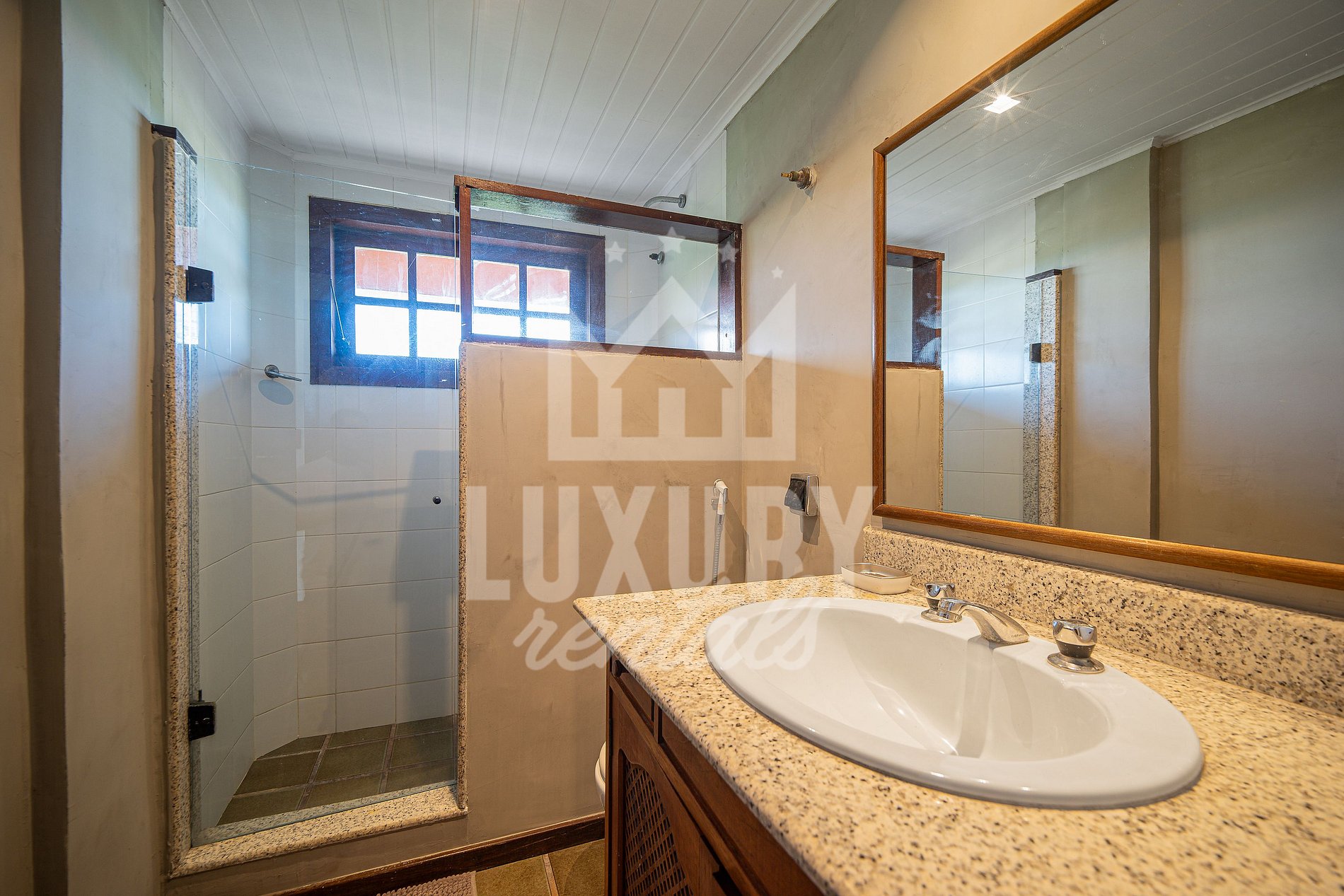 A Casa é composta por Quatro Suítes, sendo uma Suíte Master com Closet; Todas com Ar Condicionado, Roupas de Cama e Banho.