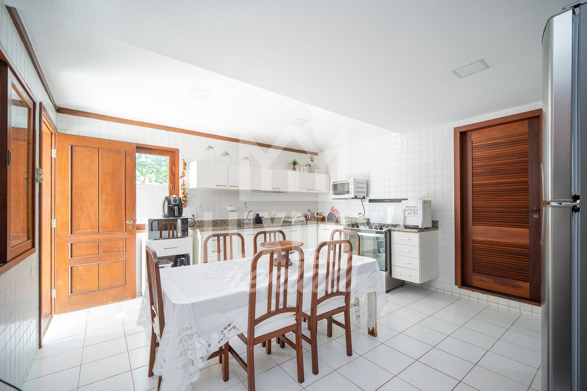 A Casa é composta por 5 Suítes, todas com Ar Condicionado, Roupas de Cama e Banho.