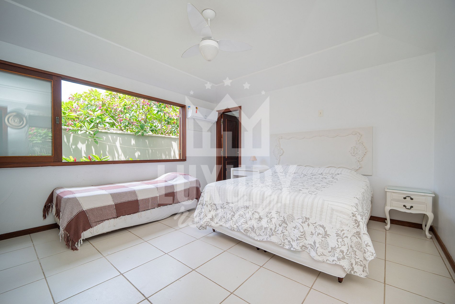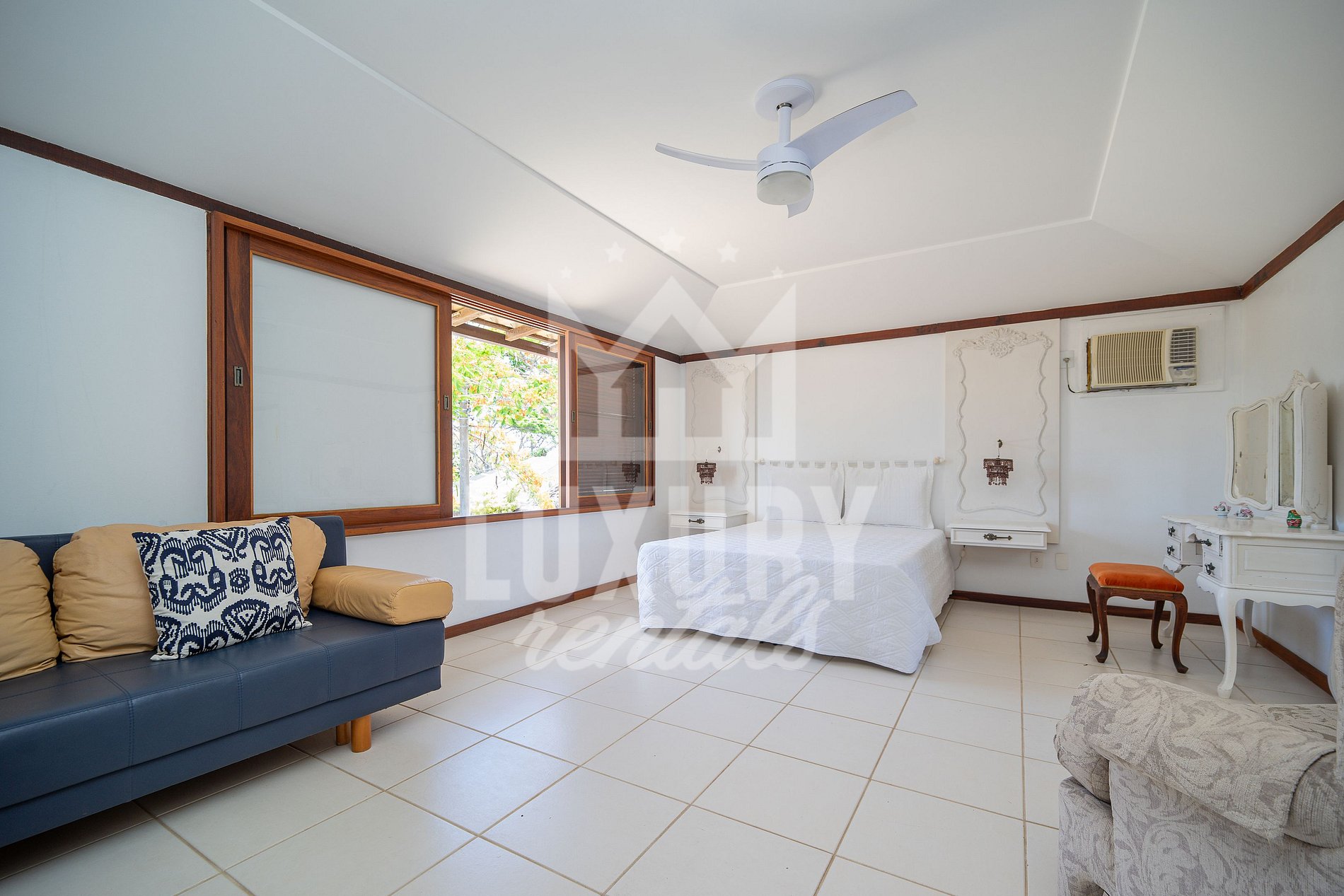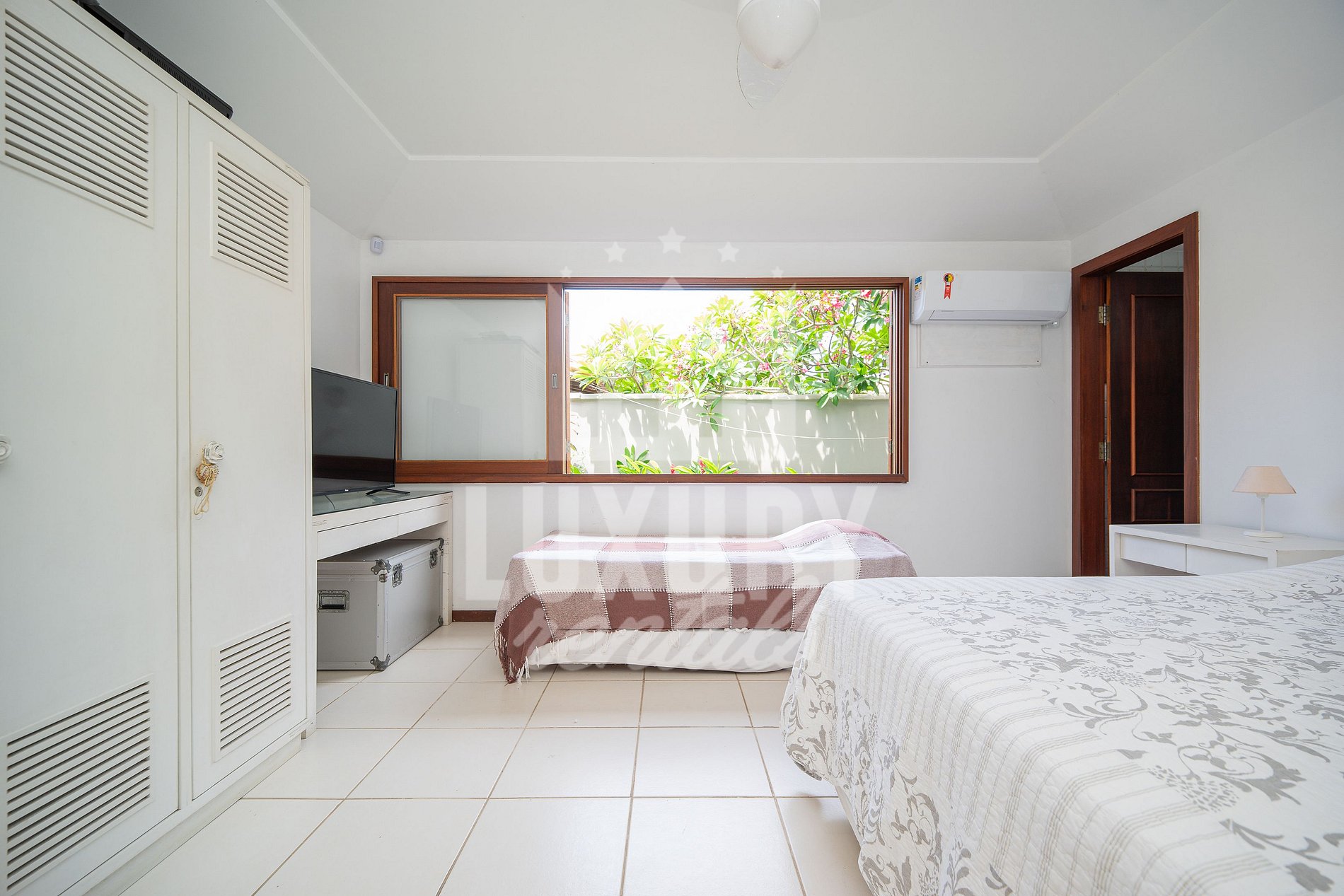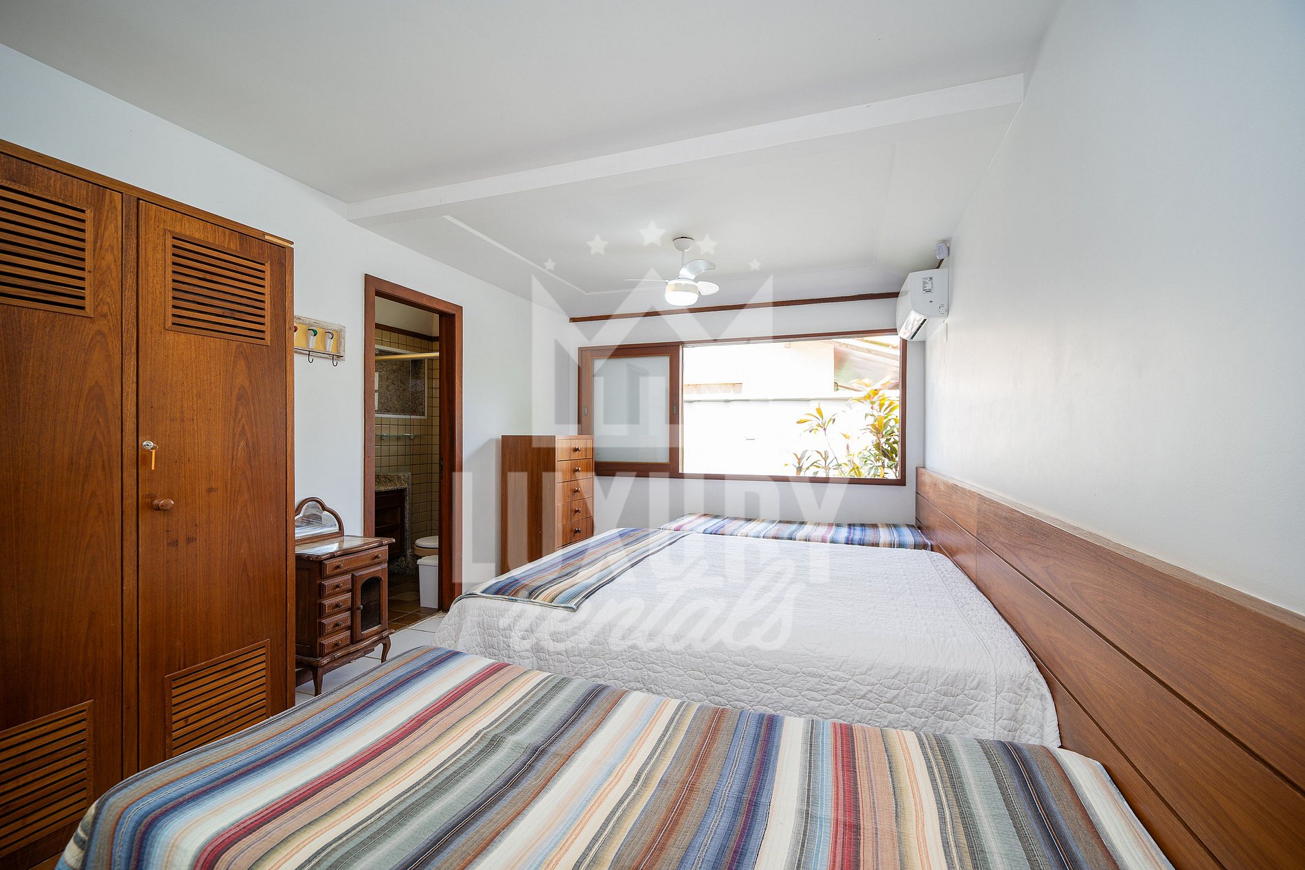 A Casa é composta por 5 Suítes, todas com Ar Condicionado, Roupas de Cama e Banho.