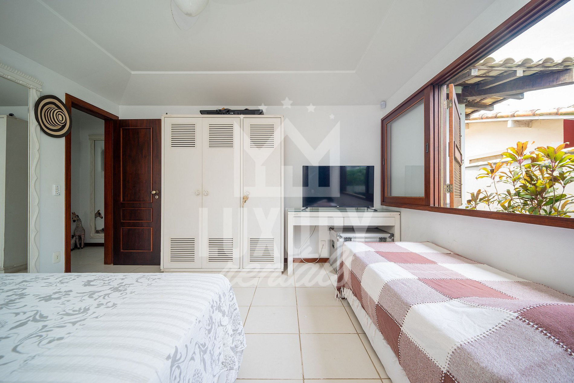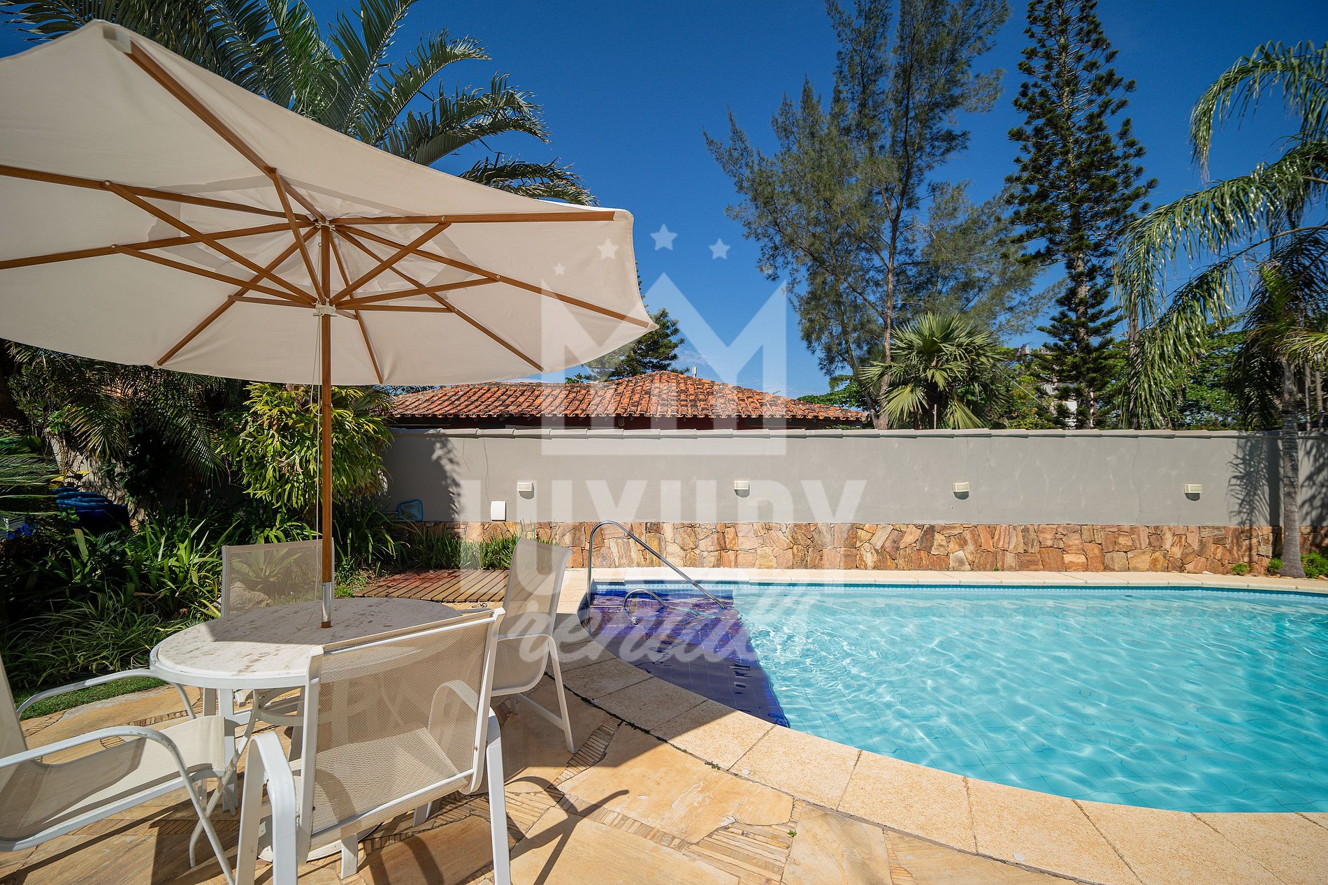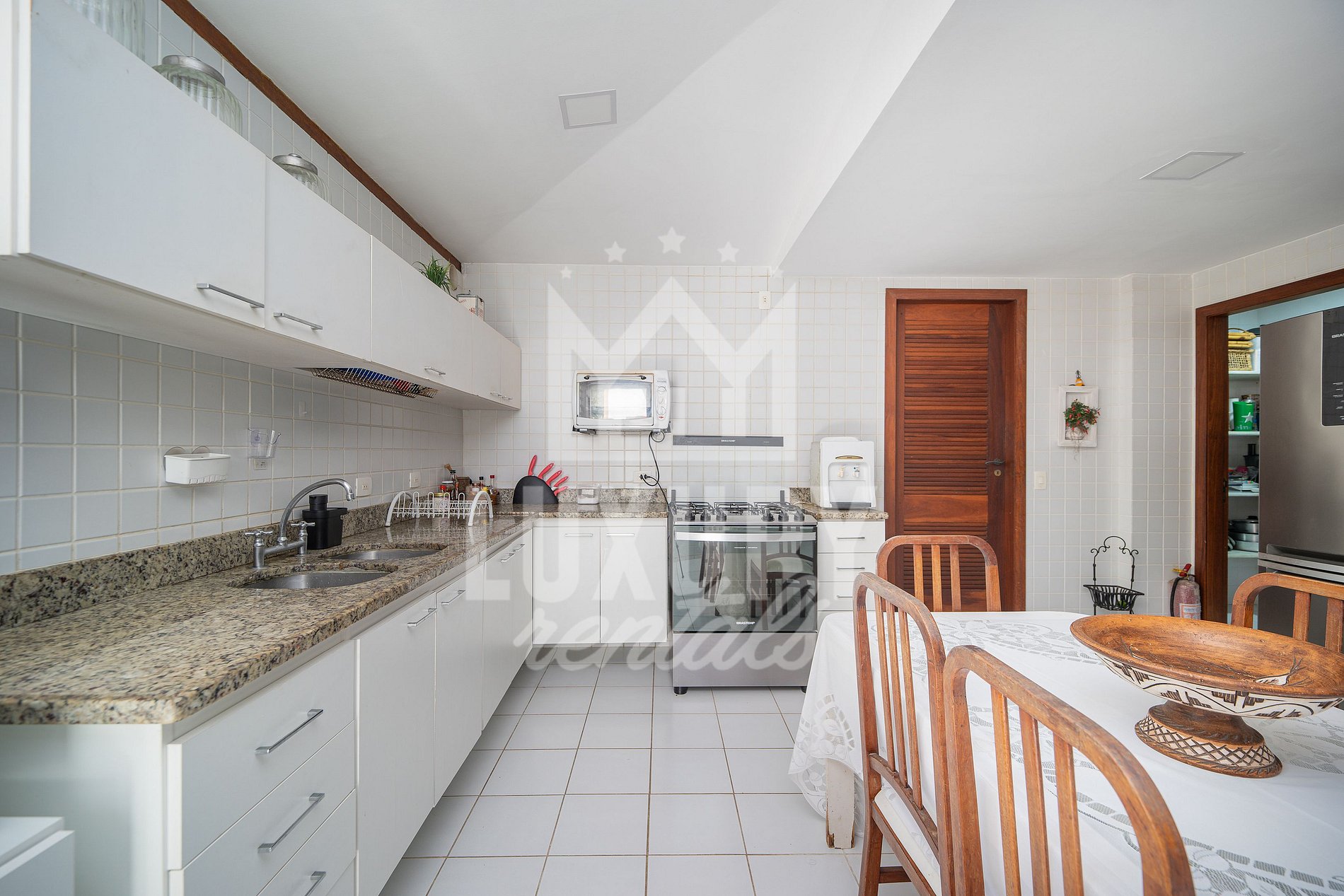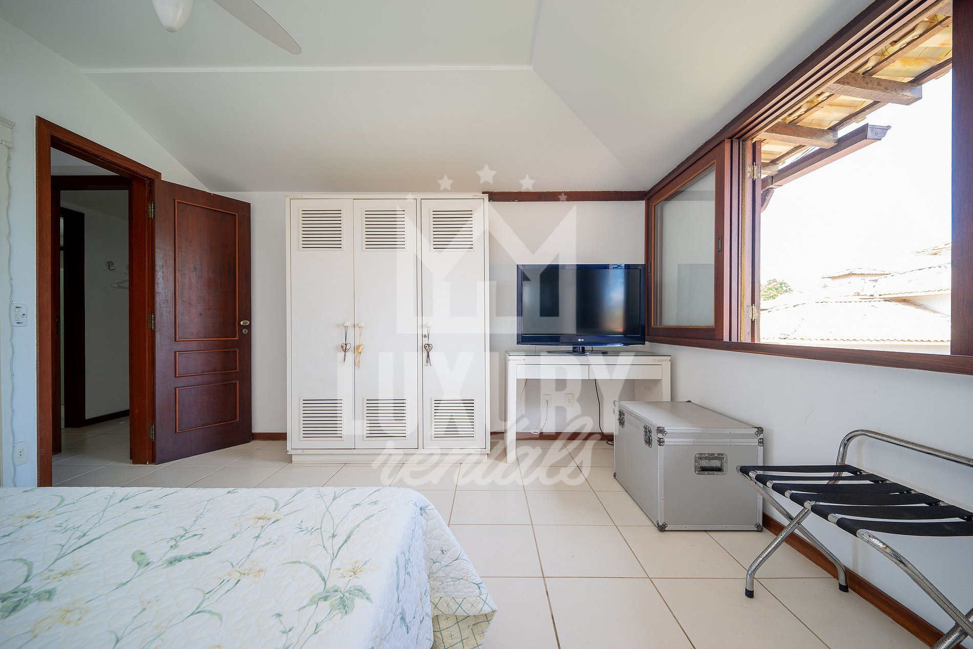 A Casa é composta por 5 Suítes, todas com Ar Condicionado, Roupas de Cama e Banho.