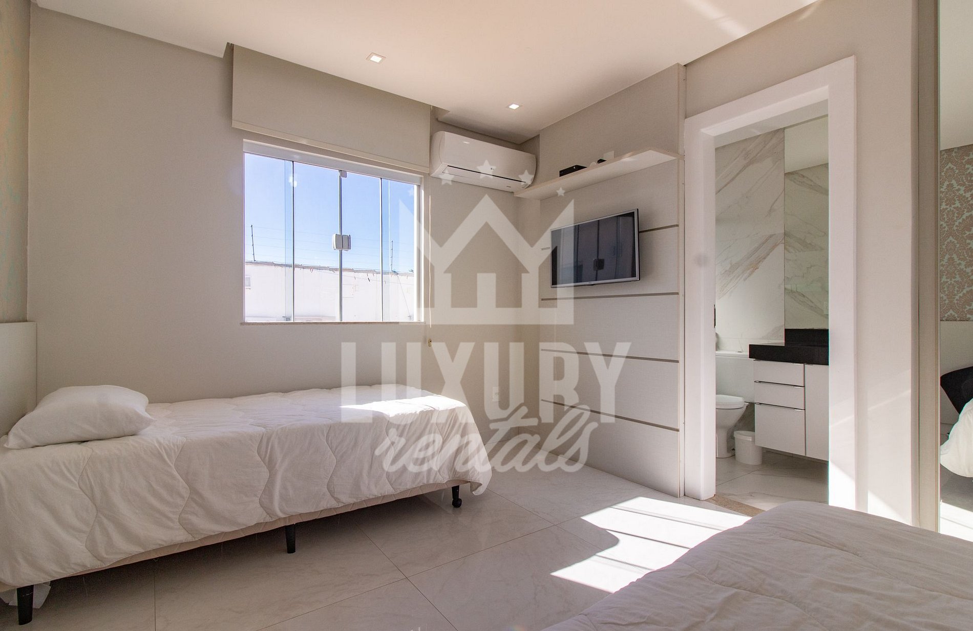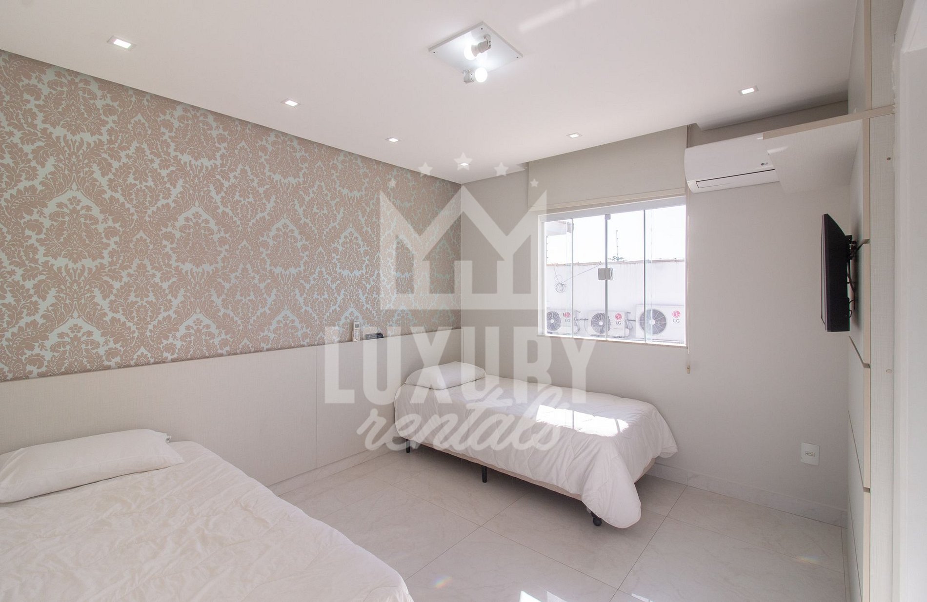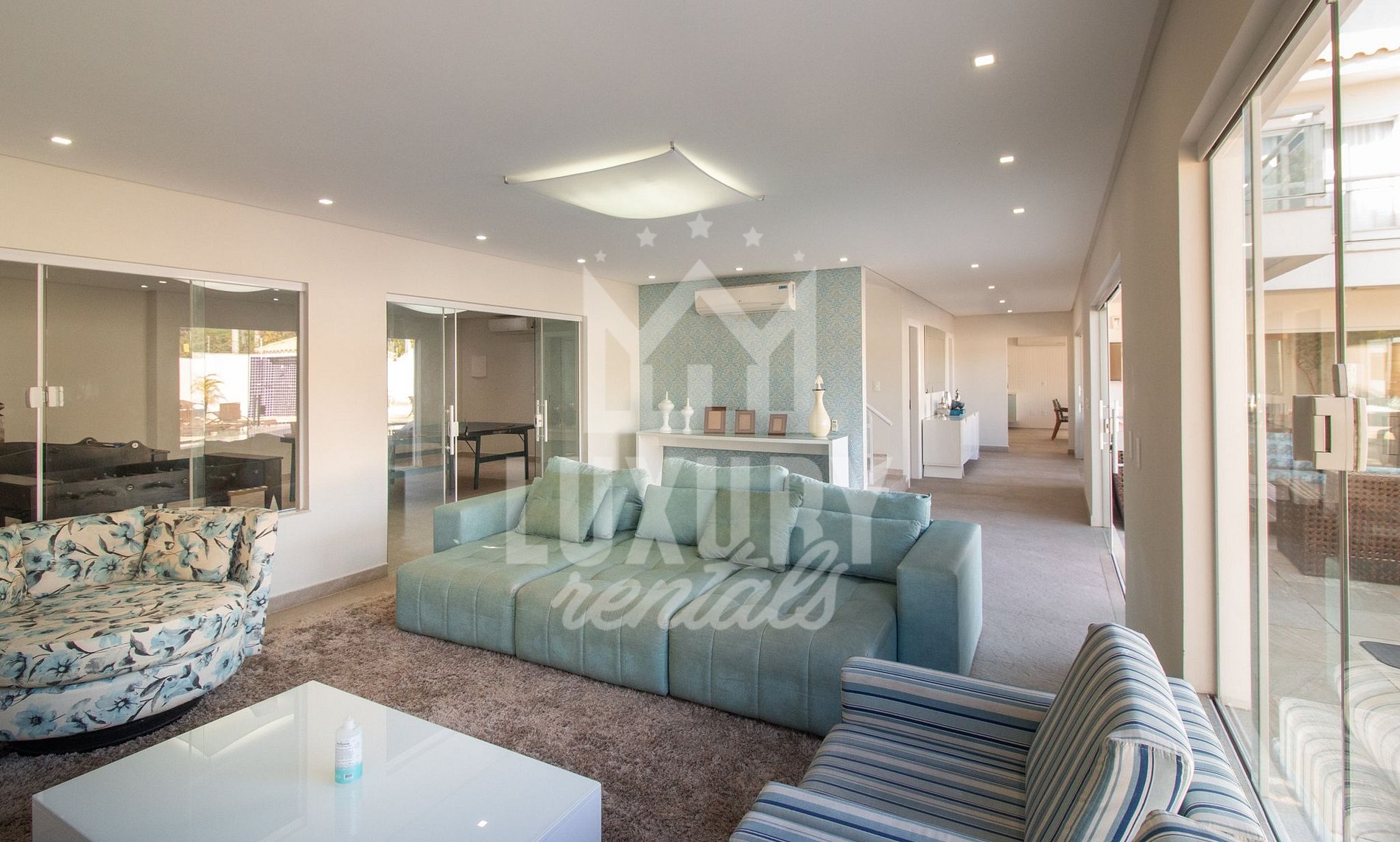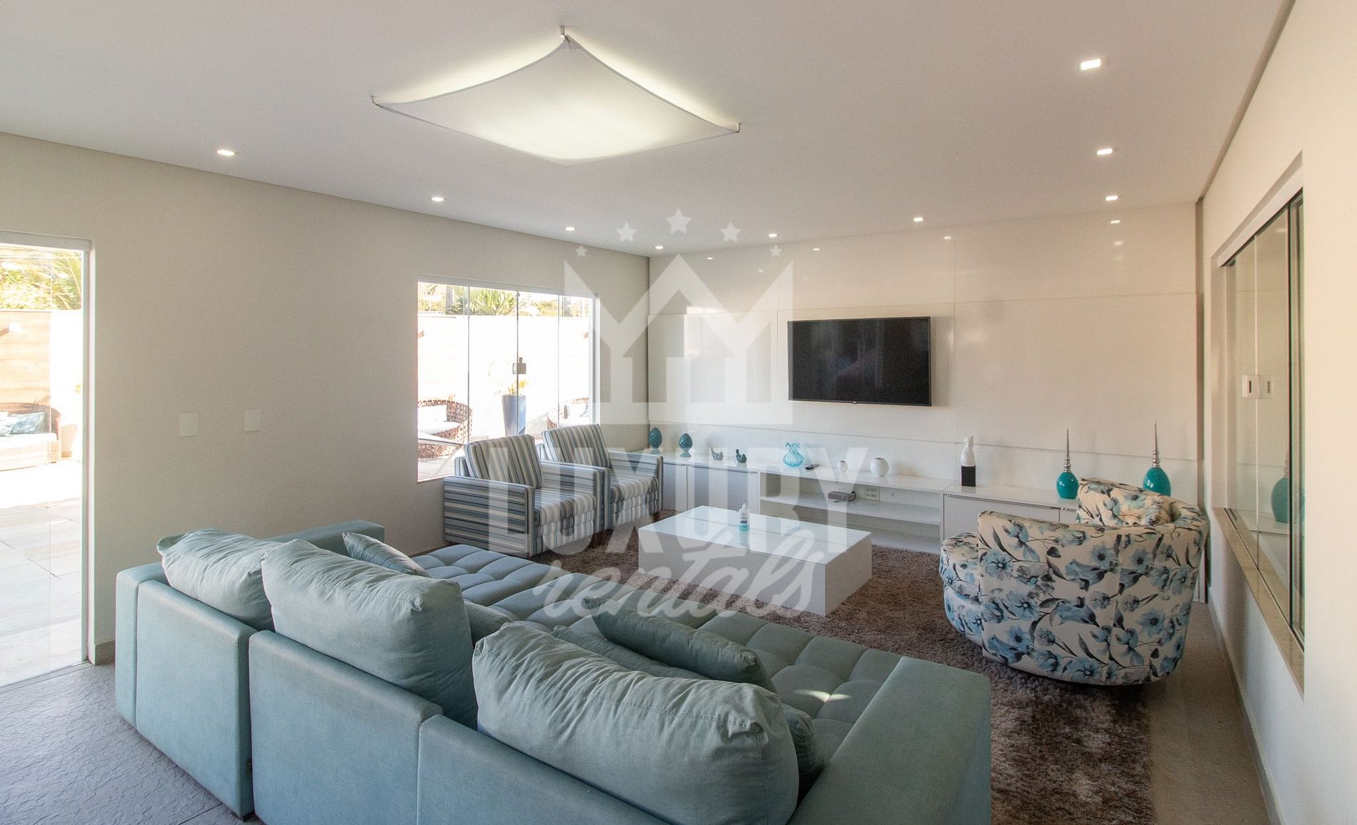 A residência va lhe proporcionar nove quartos, sendo sete suítes, todos possuindo ar condicionado, roupa de cama e banho, além de sua área interna com sala de estar, sala de jantar, sala de jogos e sua excelente cozinha com todos os utensílios e rede wi-fi que abrange toda residencia.