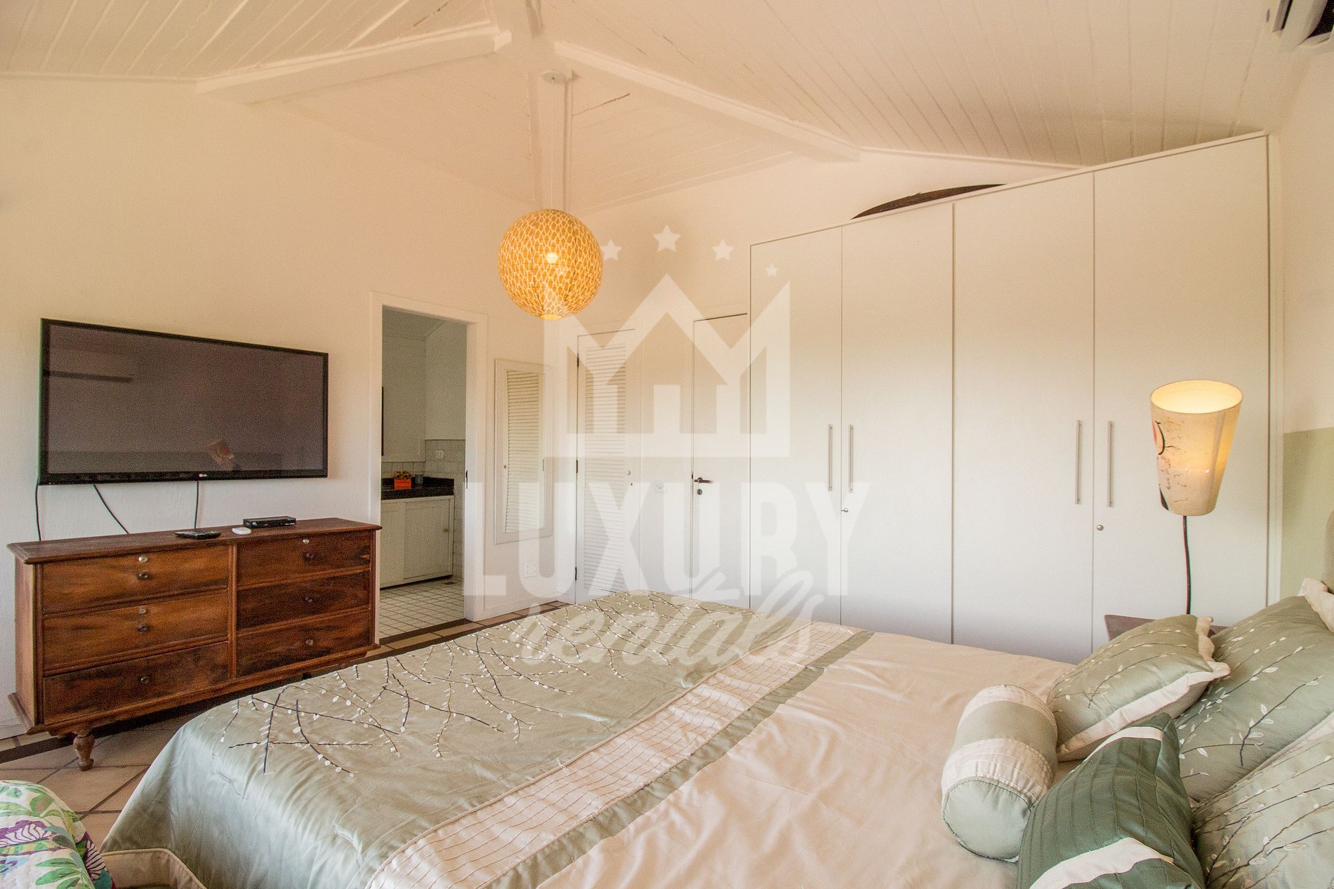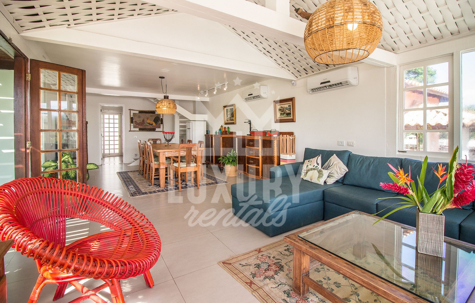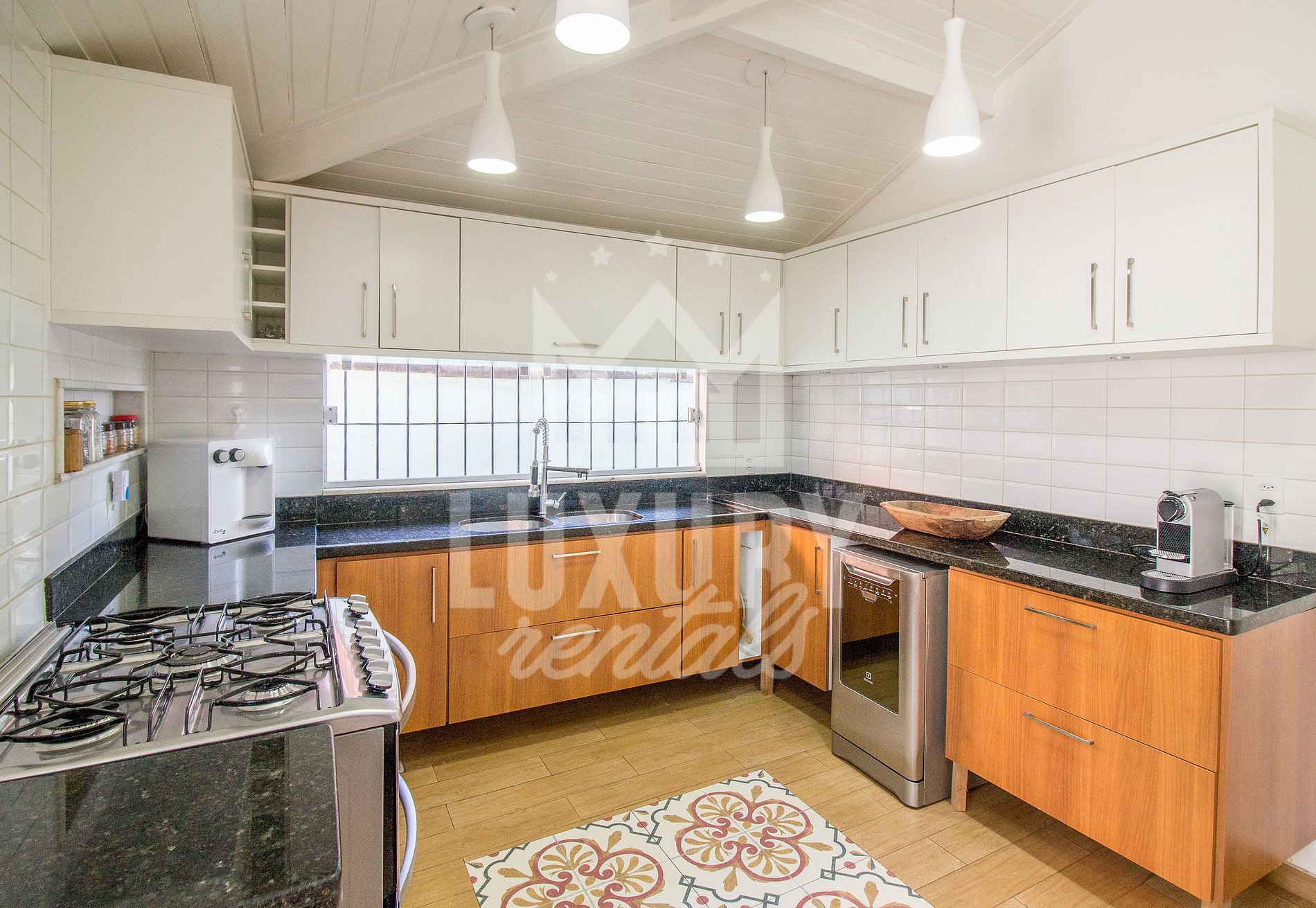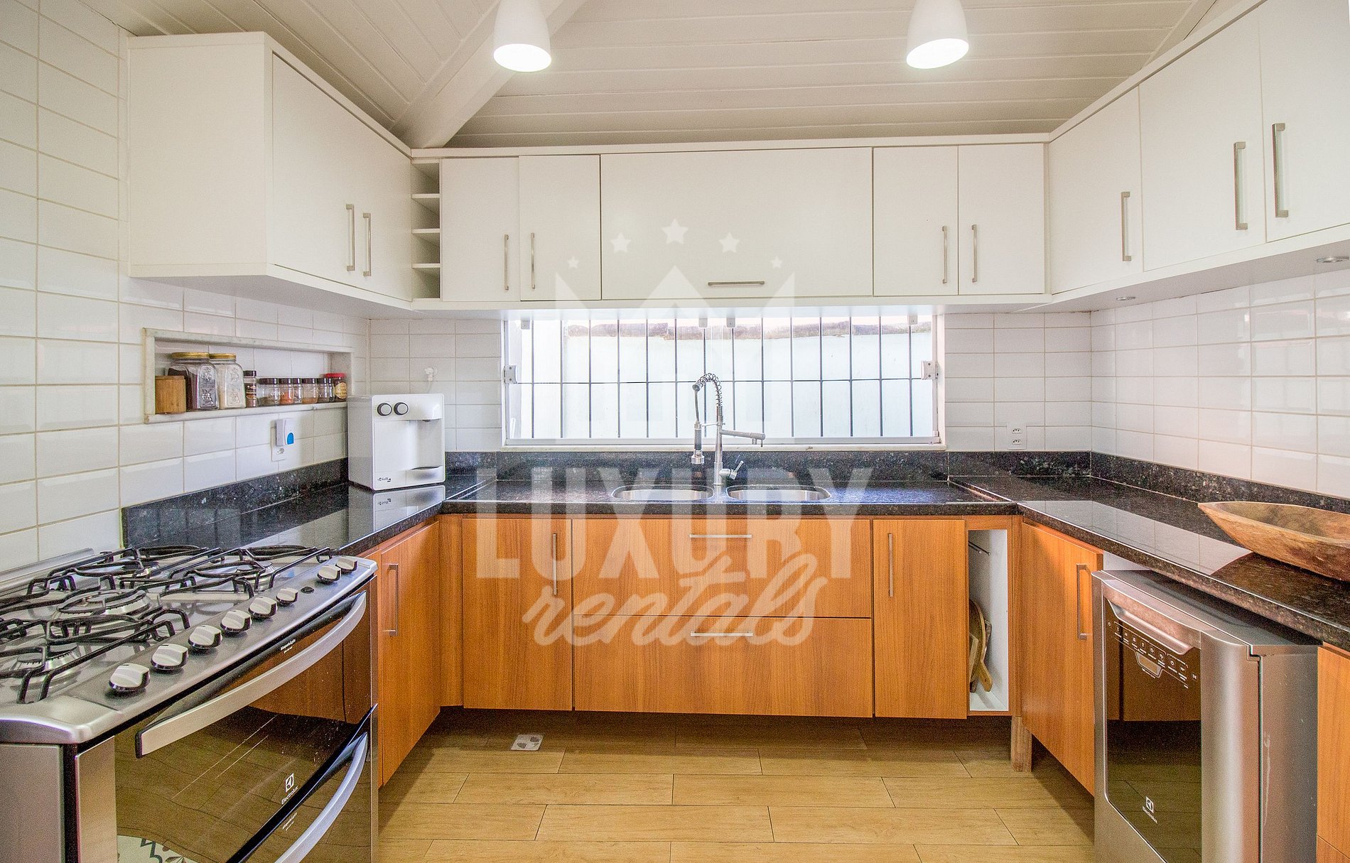 A excelente área interna da residência vai lhe proporcionar quatro suítes, todas possuindo ar condicionado, roupa de cama e banho; sala de estar integrada com sala de jantar, cozinha com todos os utensílios e rede Wi-Fi que abrange toda residência.