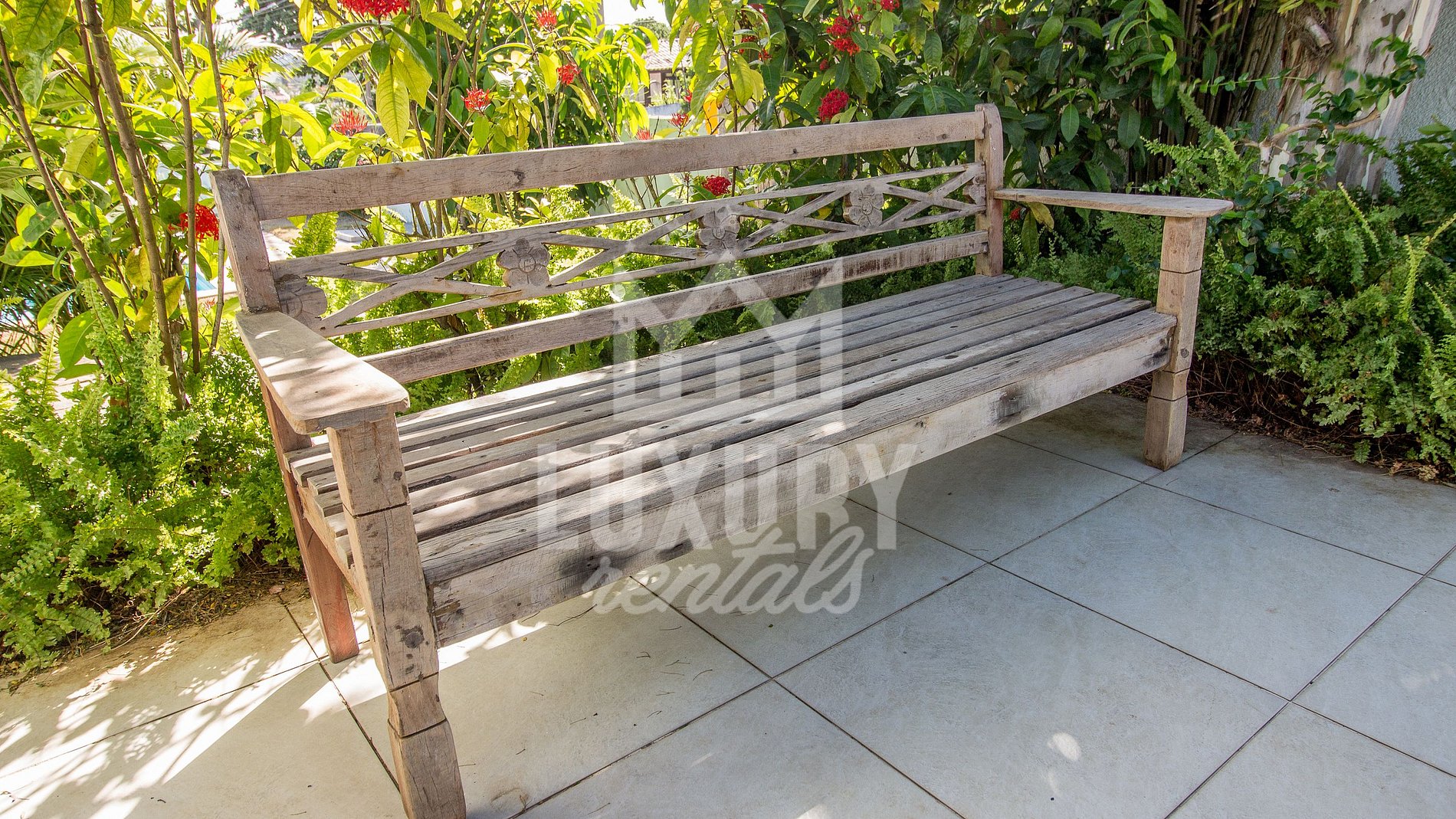 Na sua excepcional área externa você poderá desfrutar da sua área Gourmet com churrasqueira portátil, ótima área com piscina, espreguiçadeiras, poltronas aconchegantes, mesa para café da manha e um belo jardim.