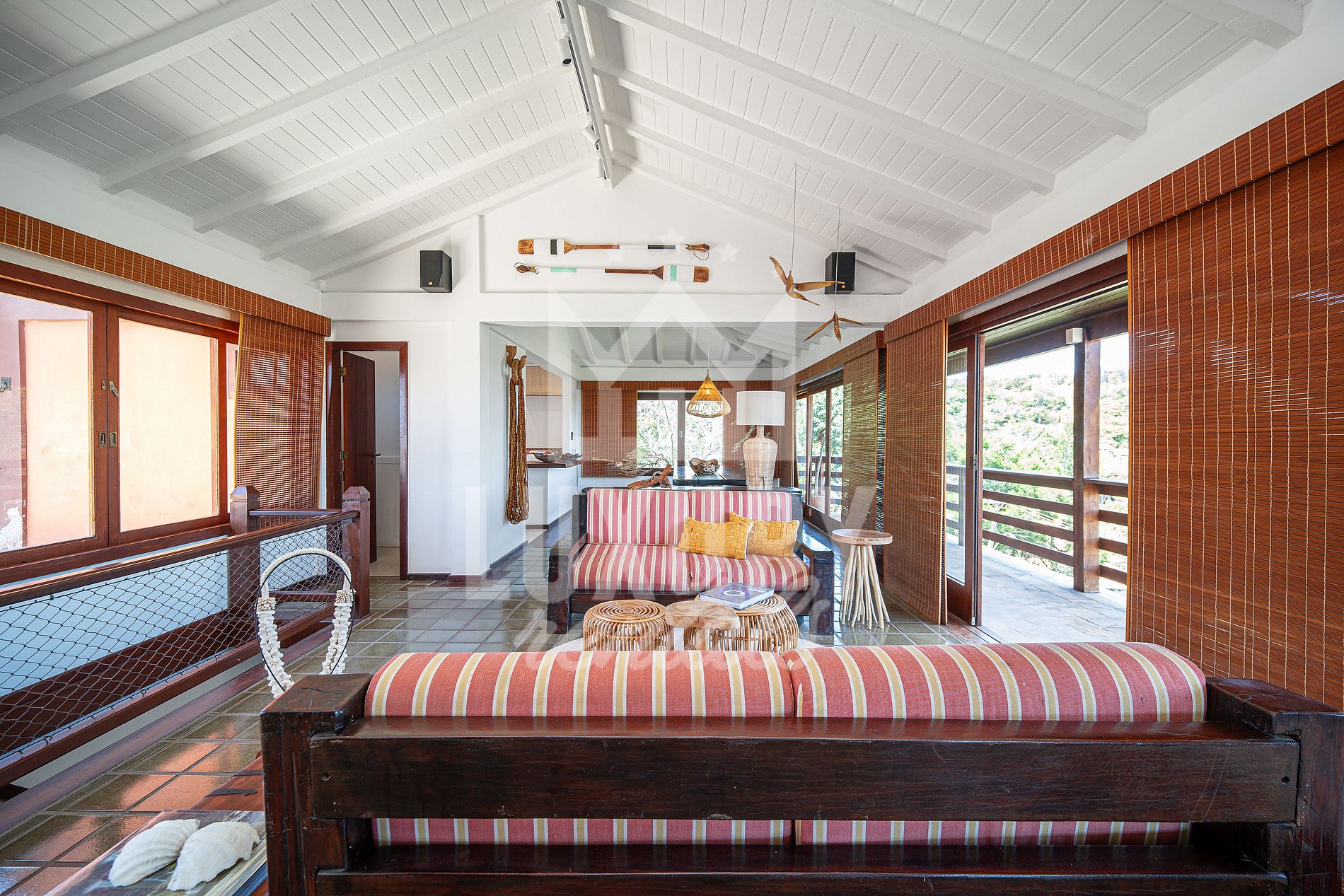 A Sua Área interna é composta com uma Sala de Estar toda Avarandada com Vista para Praia de Manguinhos, Sala de Tv, Sala de Jantar e rede Wi-Fi que abrange toda a casa.