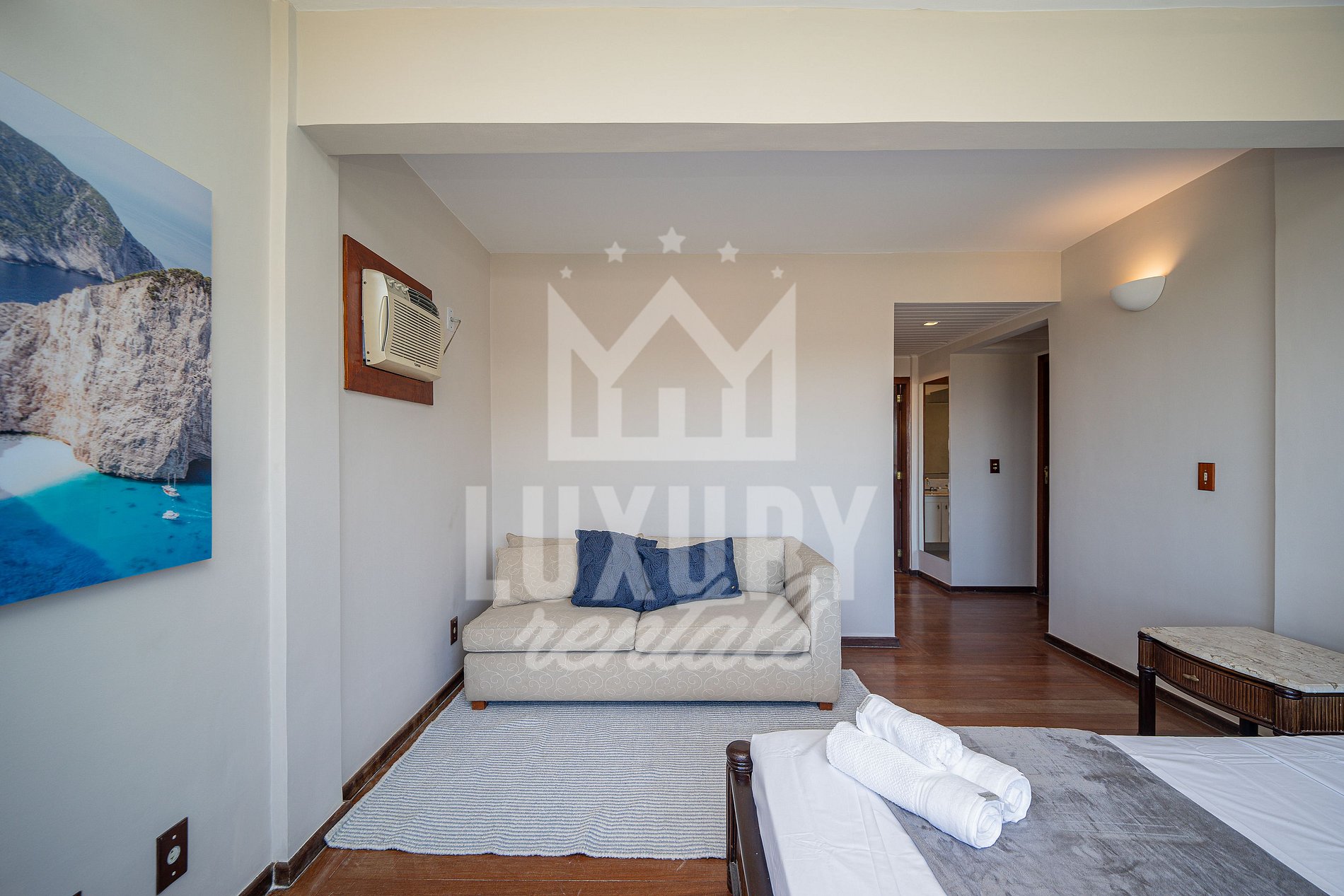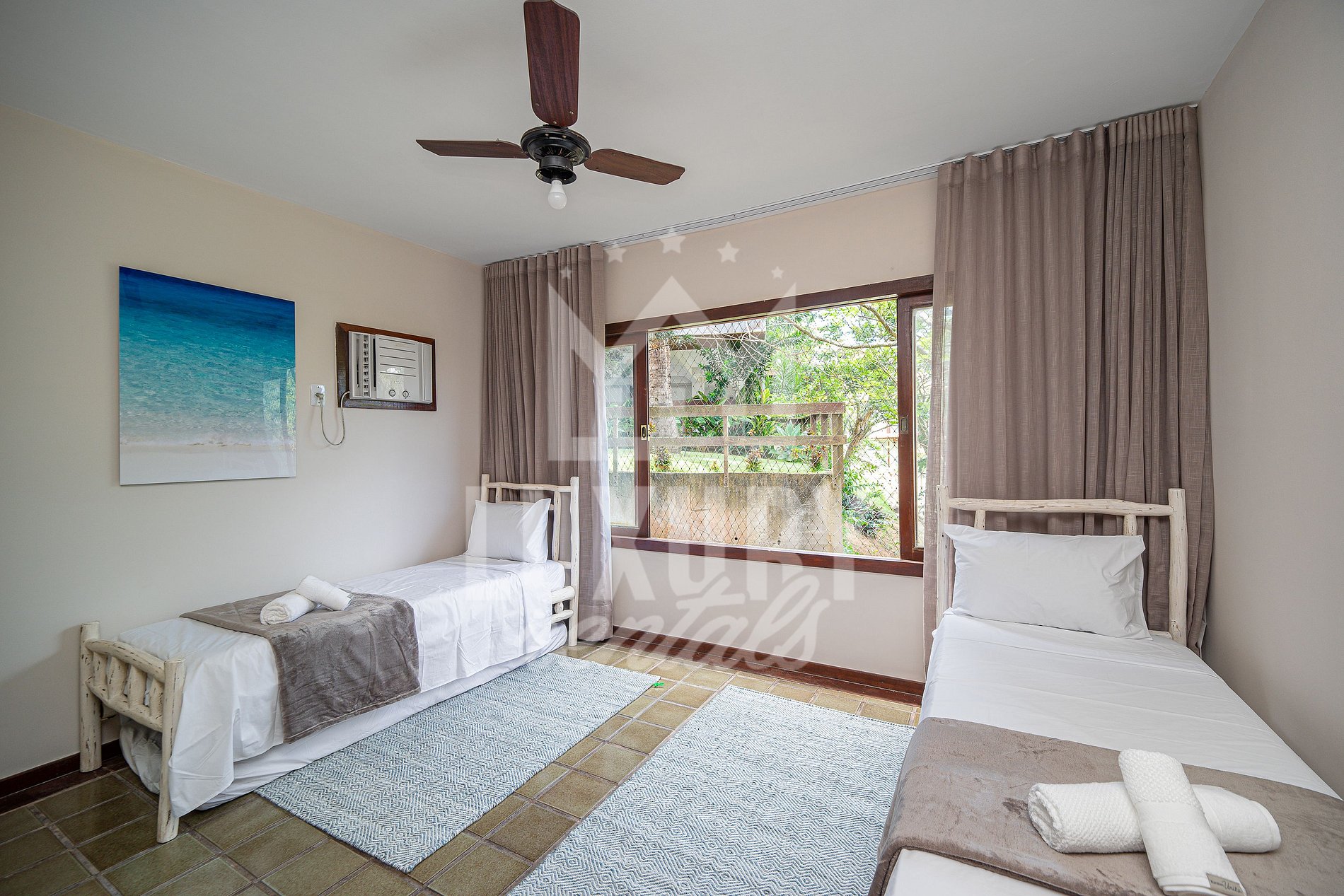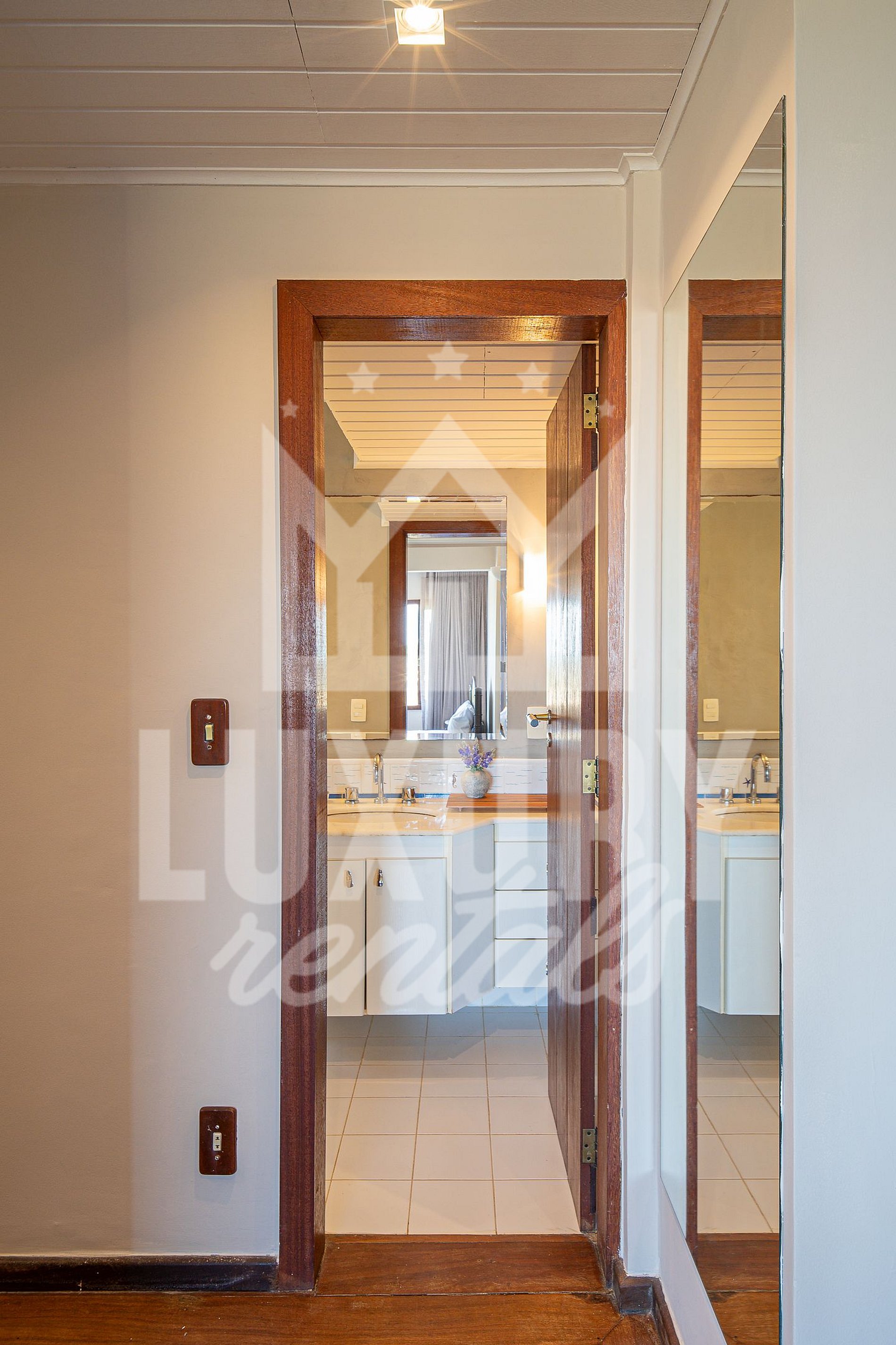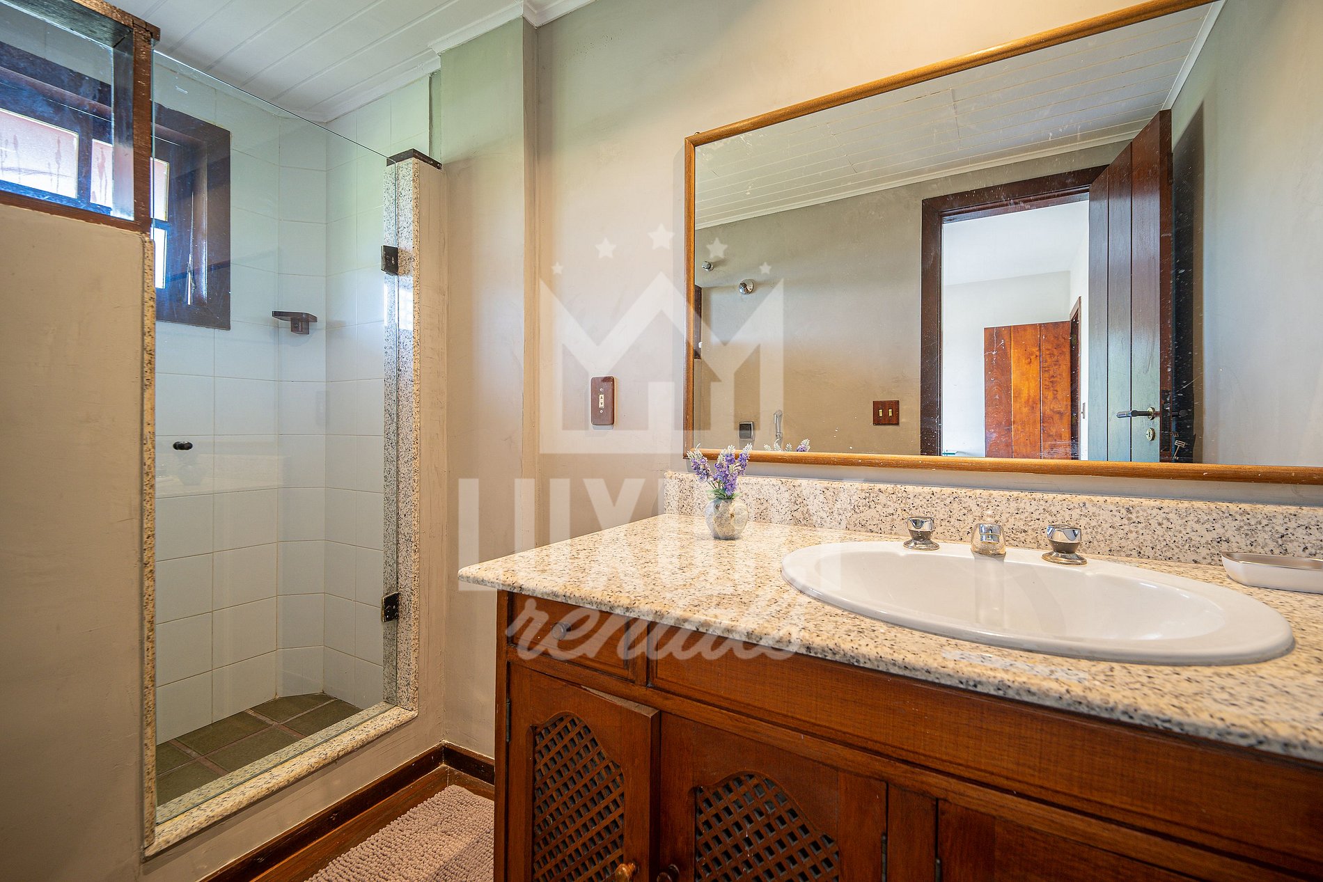 A Casa é composta por Quatro Suítes, sendo uma Suíte Master com Closet; Todas com Ar Condicionado, Roupas de Cama e Banho.