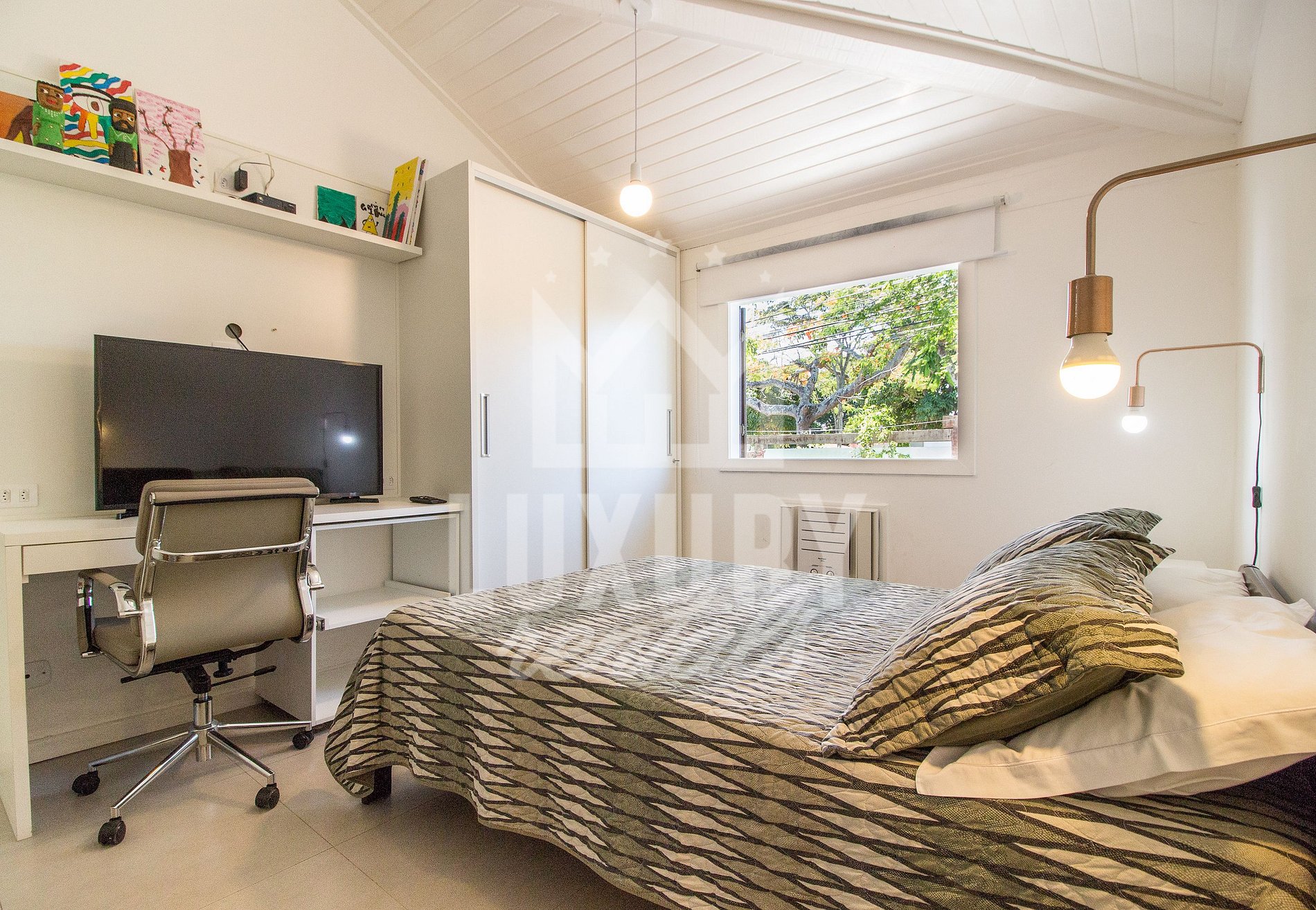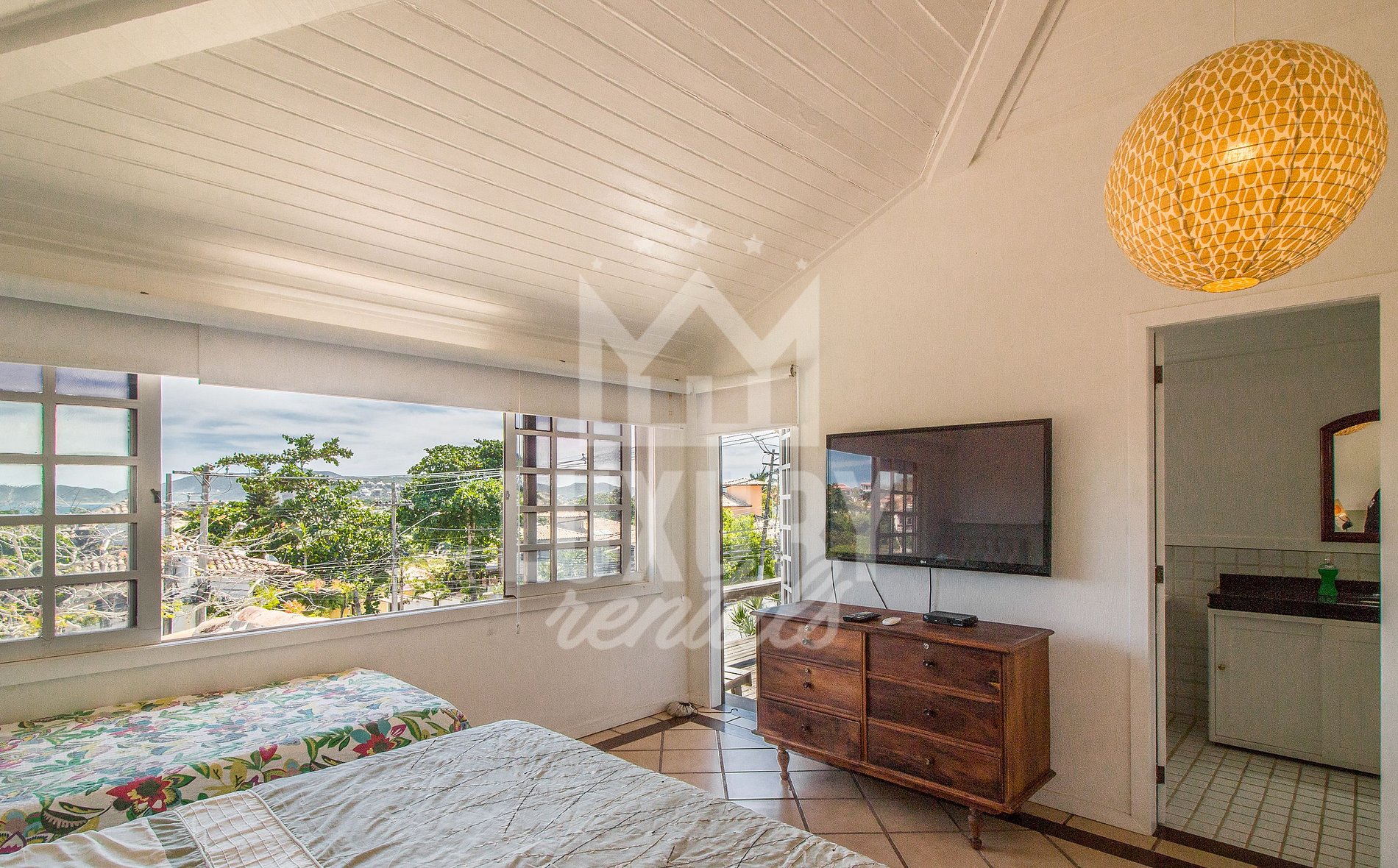A excelente área interna da residência vai lhe proporcionar quatro suítes, todas possuindo ar condicionado, roupa de cama e banho; sala de estar integrada com sala de jantar, cozinha com todos os utensílios e rede Wi-Fi que abrange toda residência.