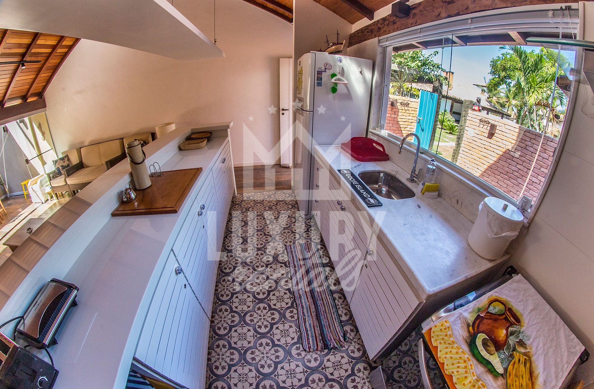 Acesso a toda residência, exceto a dispensa e casa do caseiro.