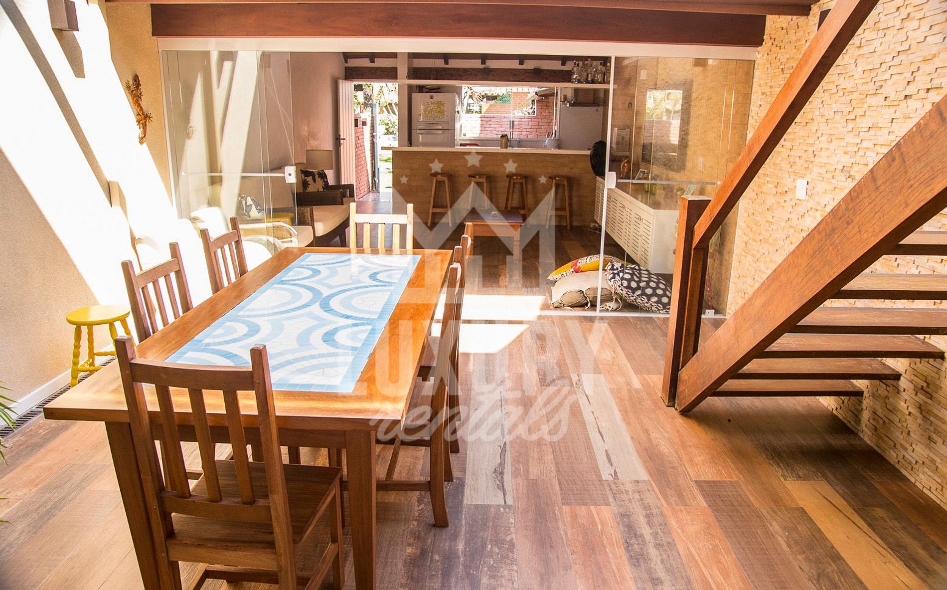 A Residência ira Proporcionar Três Quartos, todos Possuindo Ar Condicionado, Roupa de Cama e Banho; Além da Área Interna com Sala de Estar, Sala de Jantar com Mesa ao Ar Livre, Excelente Cozinha com Utensílios e Rede Wi-Fi que Abrange toda Residência.