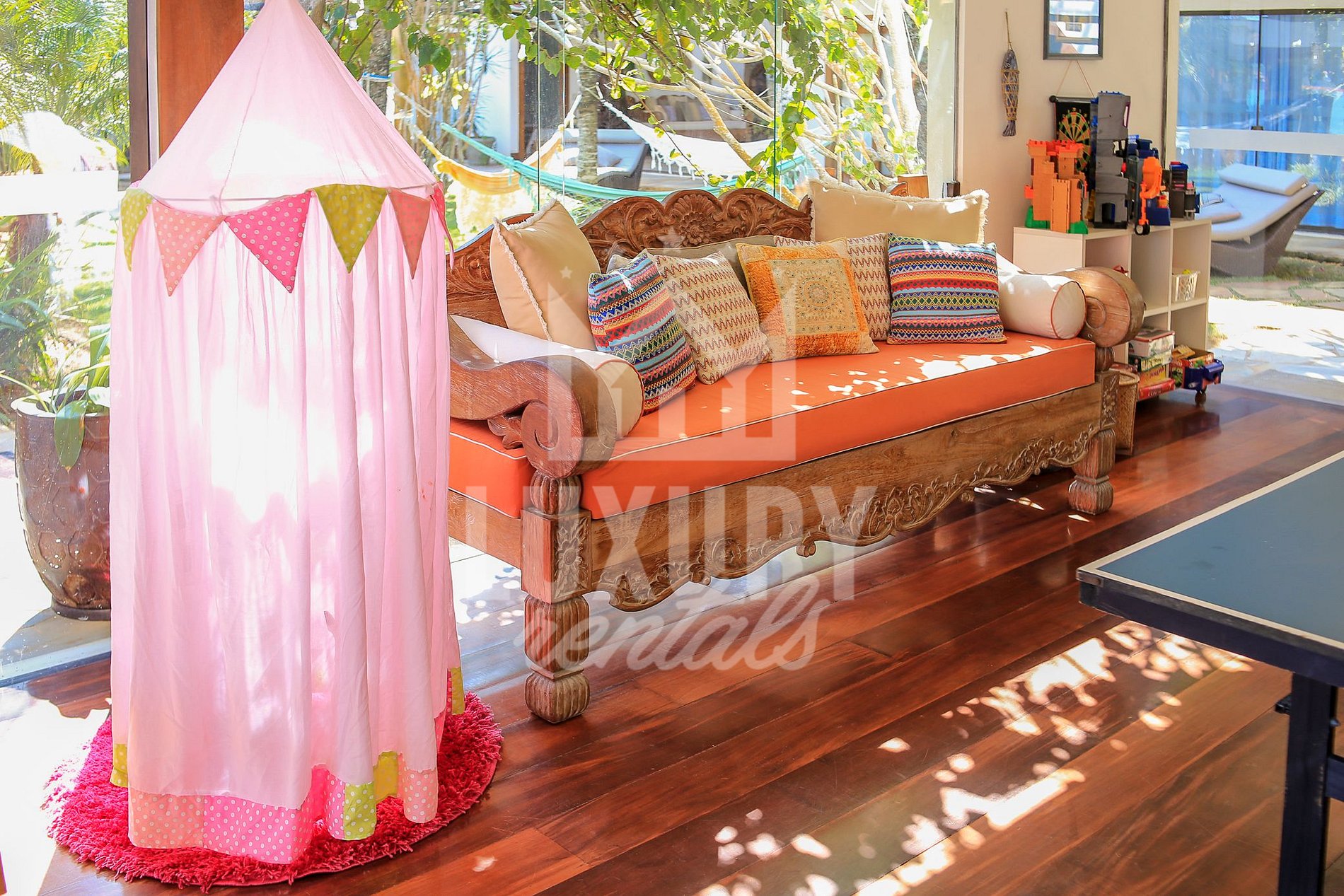 A Mansão irá Proporcionar vários Ambientes, podendo escolher entre a Sala de Cinema, o Jardim Central para quem busca Sossego e Terminar uma tarde com Descansando em uma rede; poderá ir até à Piscina se Banhar, Relaxar nas Espreguiçadeiras enquanto se Bronzeia apreciando uma Vista Panorâmica Perfeita e com Pequenos Passos Você Conseguirá Tocar seus Pés nas Areias Quentes da Praia e assim Você terá Acesso Direto a Magnífica Praia da Ferradura.