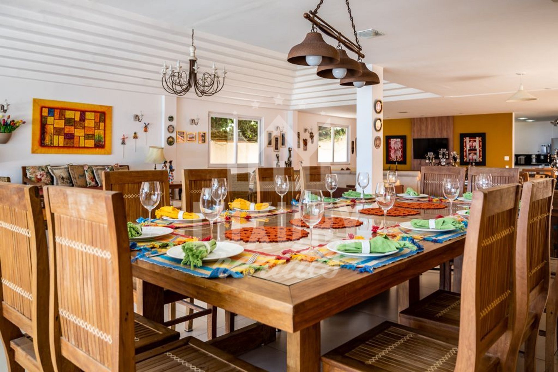 A Mansão ira Proporcionar Seis Suítes, sendo uma Suíte Máster com Varanda e uma Perfeita Vista Panorâmica da Praia de Geribá; todas com Ar Condicionado, Roupa de Cama e Banho de Alta Qualidade, além de sua Ampla Área Interna com Sala de Estar e mesa de Bilhar, Sala de Televisão, de Jantar com Vista Mar e sua Excelente Cozinha com todos os Utensílios e Rede Wi-Fi que Abrange toda Mansão.