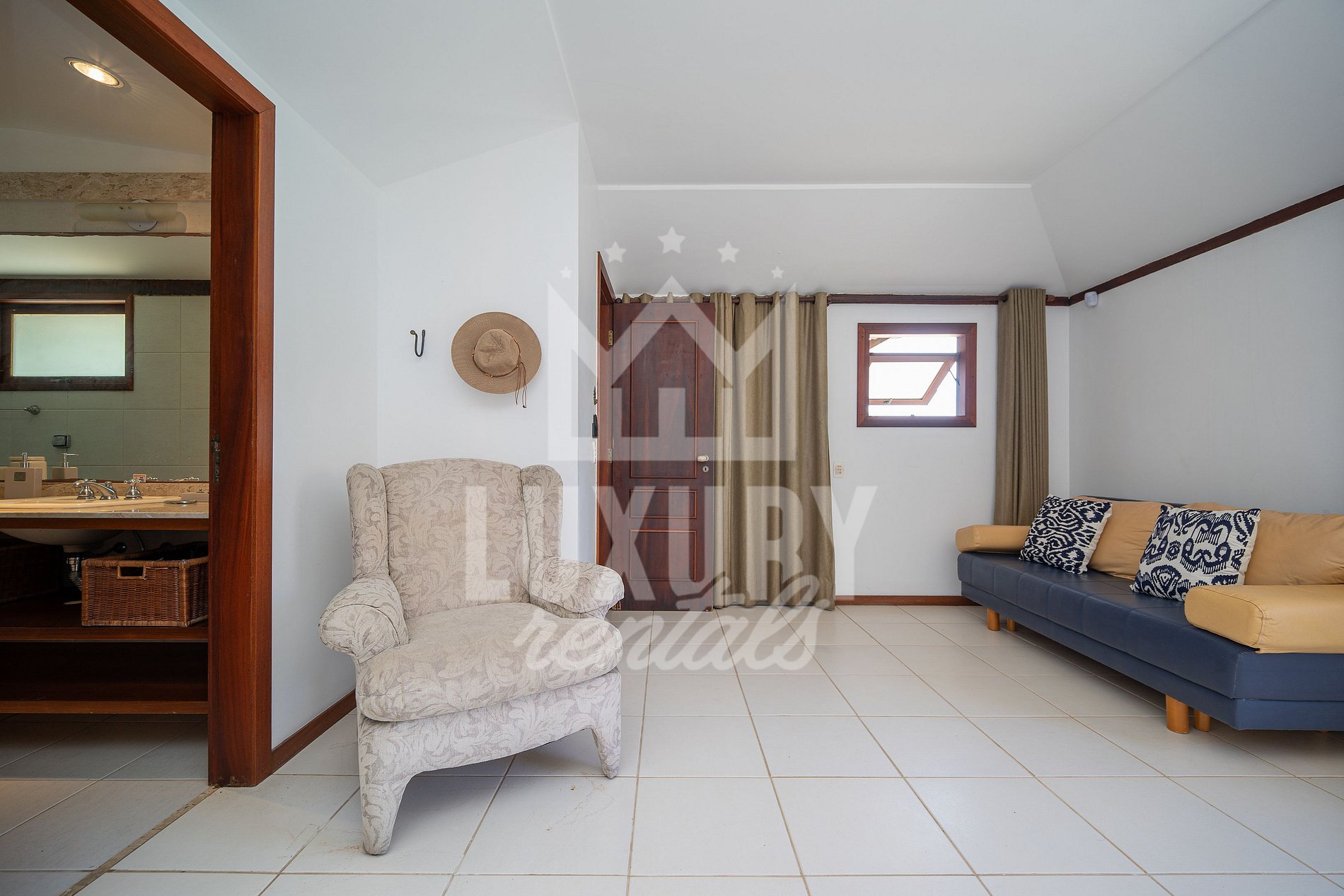 A Casa é composta por 5 Suítes, todas com Ar Condicionado, Roupas de Cama e Banho.
