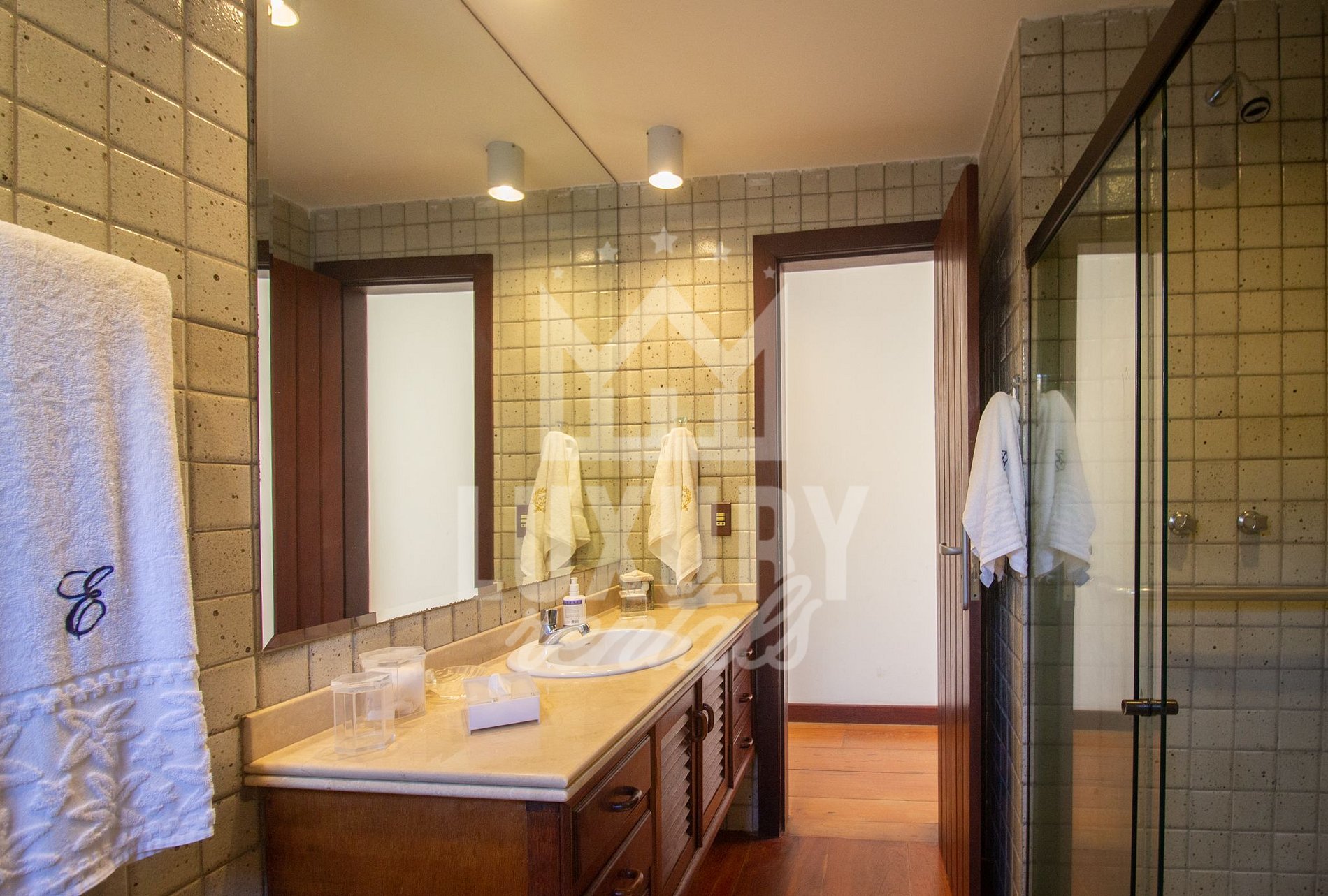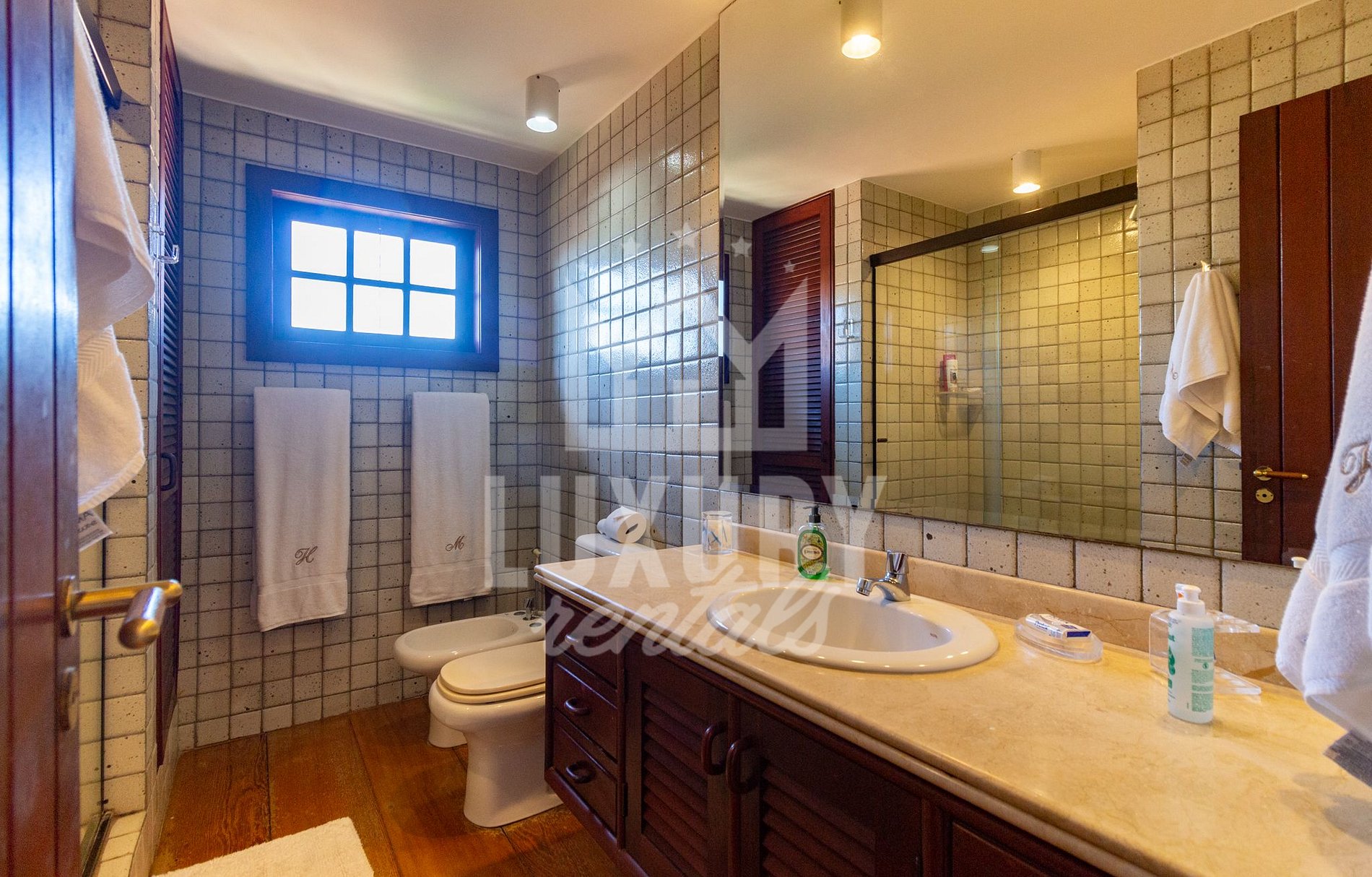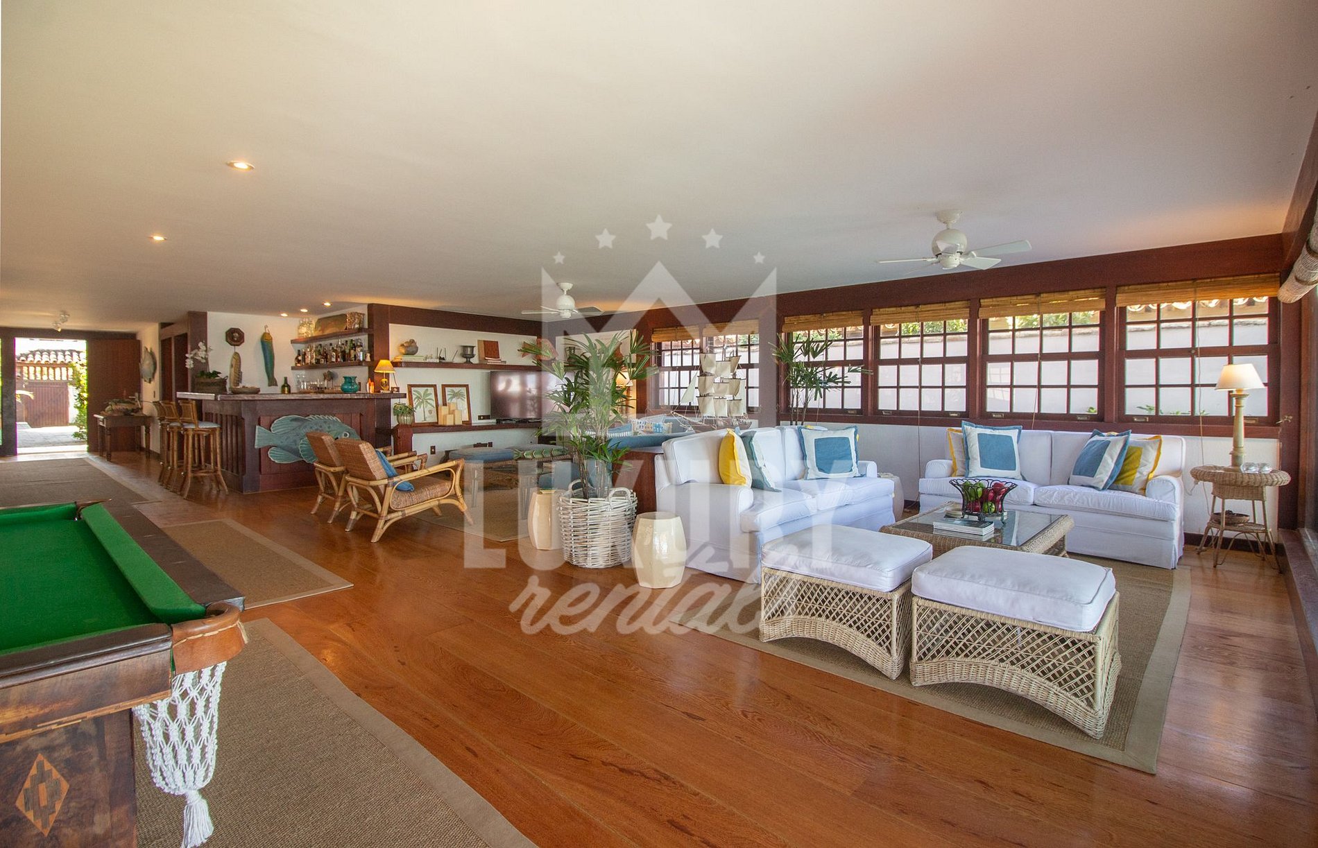 A Residência vai Proporcionar Cinco Suítes, sendo a Suíte Máster com Hidromassagem e Varanda com Vista Mar, todas possuindo Ar Condicionado, Roupa de Cama e Banho, além de sua ampla Área Interna com Duas Salas de Estar, de Jantar, Mesa de Bilhar, Área de Bar, sua Excelente Cozinha com Todos os Utensílios e Rede Wi-Fi que abrange toda Residência.