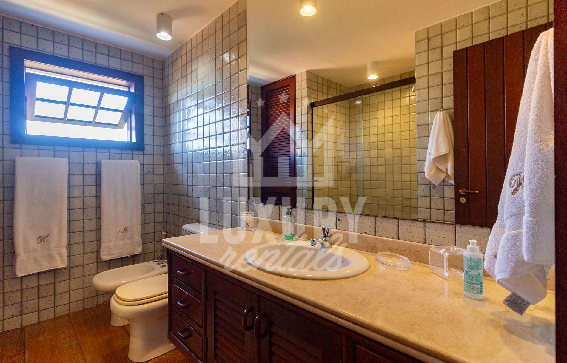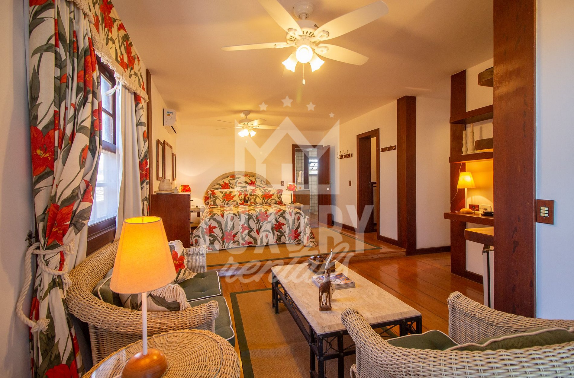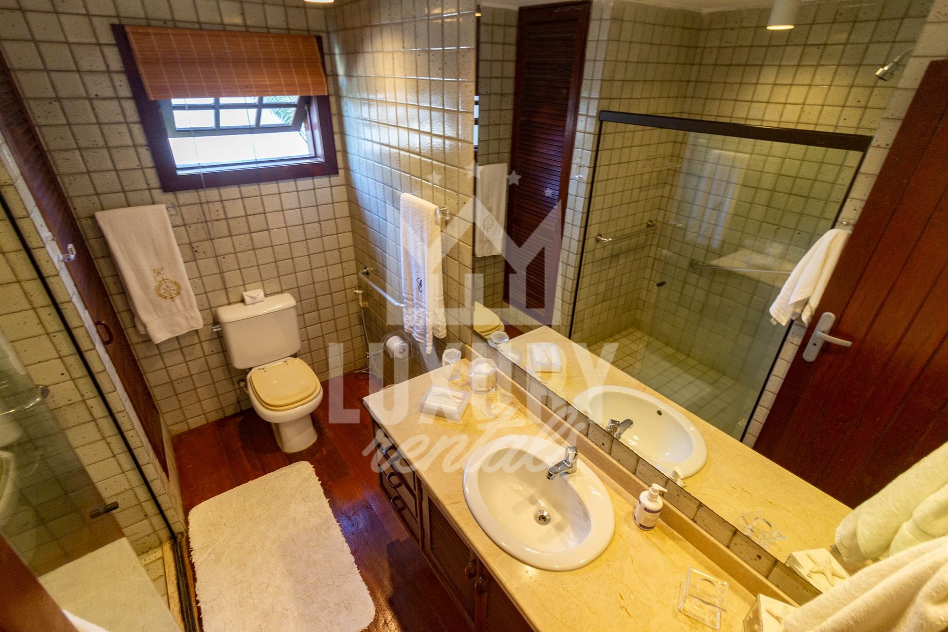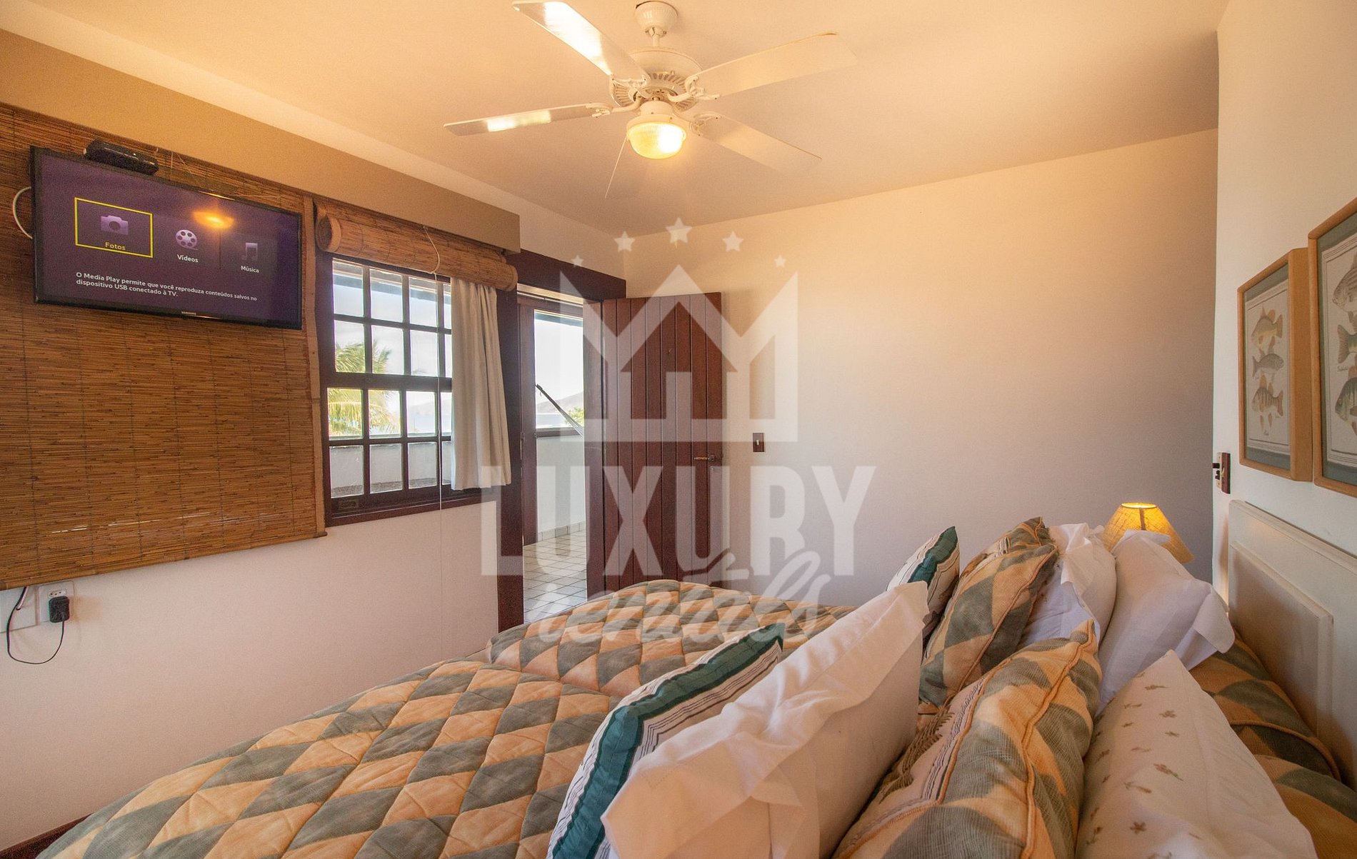 A Residência vai Proporcionar Cinco Suítes, sendo a Suíte Máster com Hidromassagem e Varanda com Vista Mar, todas possuindo Ar Condicionado, Roupa de Cama e Banho, além de sua ampla Área Interna com Duas Salas de Estar, de Jantar, Mesa de Bilhar, Área de Bar, sua Excelente Cozinha com Todos os Utensílios e Rede Wi-Fi que abrange toda Residência.