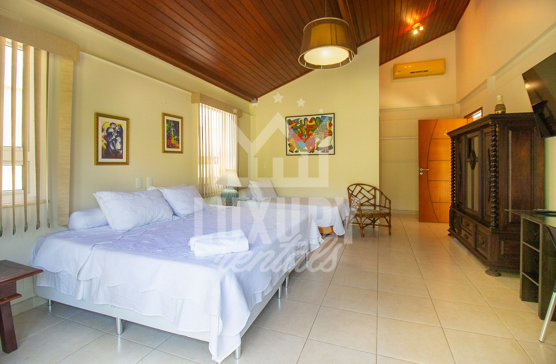 A Excelente Área Interna da Residência vai lhe Proporcionar Cinco Suítes, sendo Suíte Máster com Hidromassagem, todas Possuindo Ar Condicionado, Roupa de Cama; Duas Amplas Sala de Estar, Sala de Jantar, Cozinha com todos os Utensílios e Rede Wi-Fi que abrange toda a Residência.