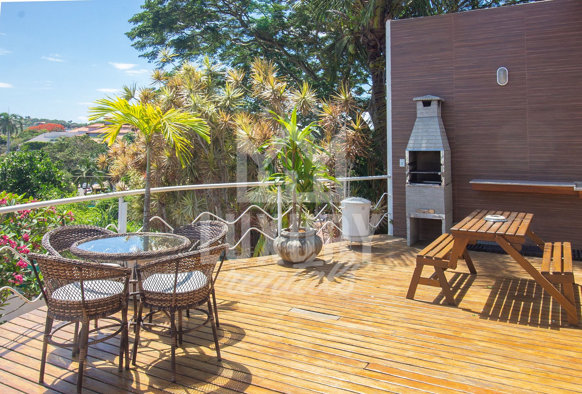 Em sua Excepcional Área Externa você poderá Desfrutar da Área Gourmet com Churrasqueira, Piscina com Cascata Feita em Pedras, Hidromassagem, Bar Molhado, Vista Perfeita do Mar e Garagem para Jet Ski.