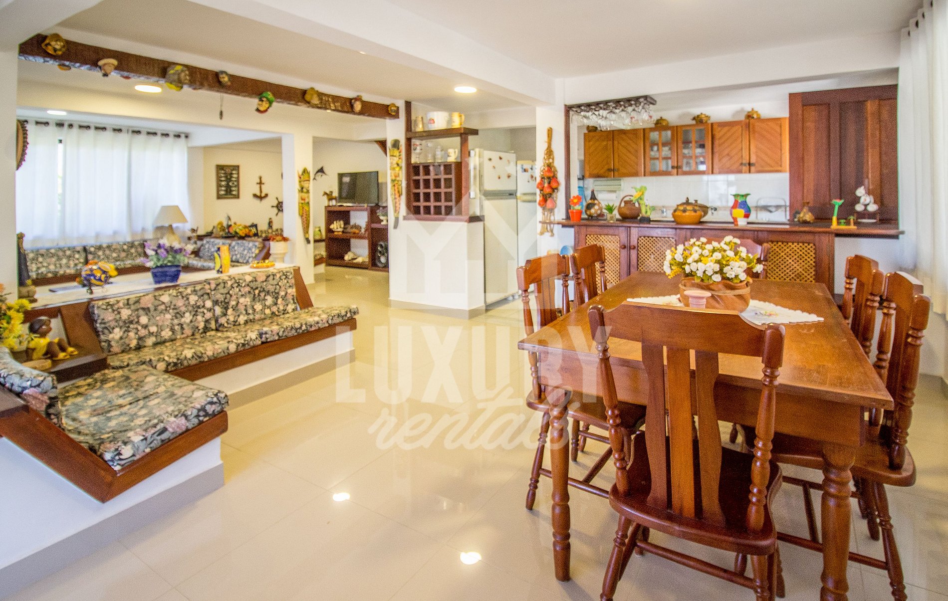 A Excelente Área Interna da Residência vai Proporcionar Cinco Suítes, Todas Possuindo Ar Condicionado, Roupa de Cama e Banho; Duas Sala de Estar Integrada com Sala de Jantar, Cozinha com Utensílios e Rede Wi-Fi que Abrange Toda a Residência.