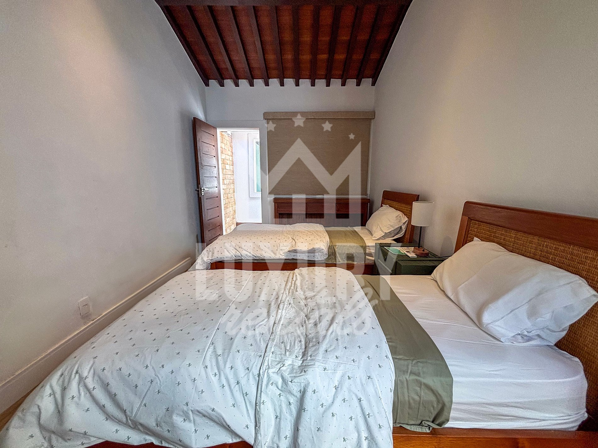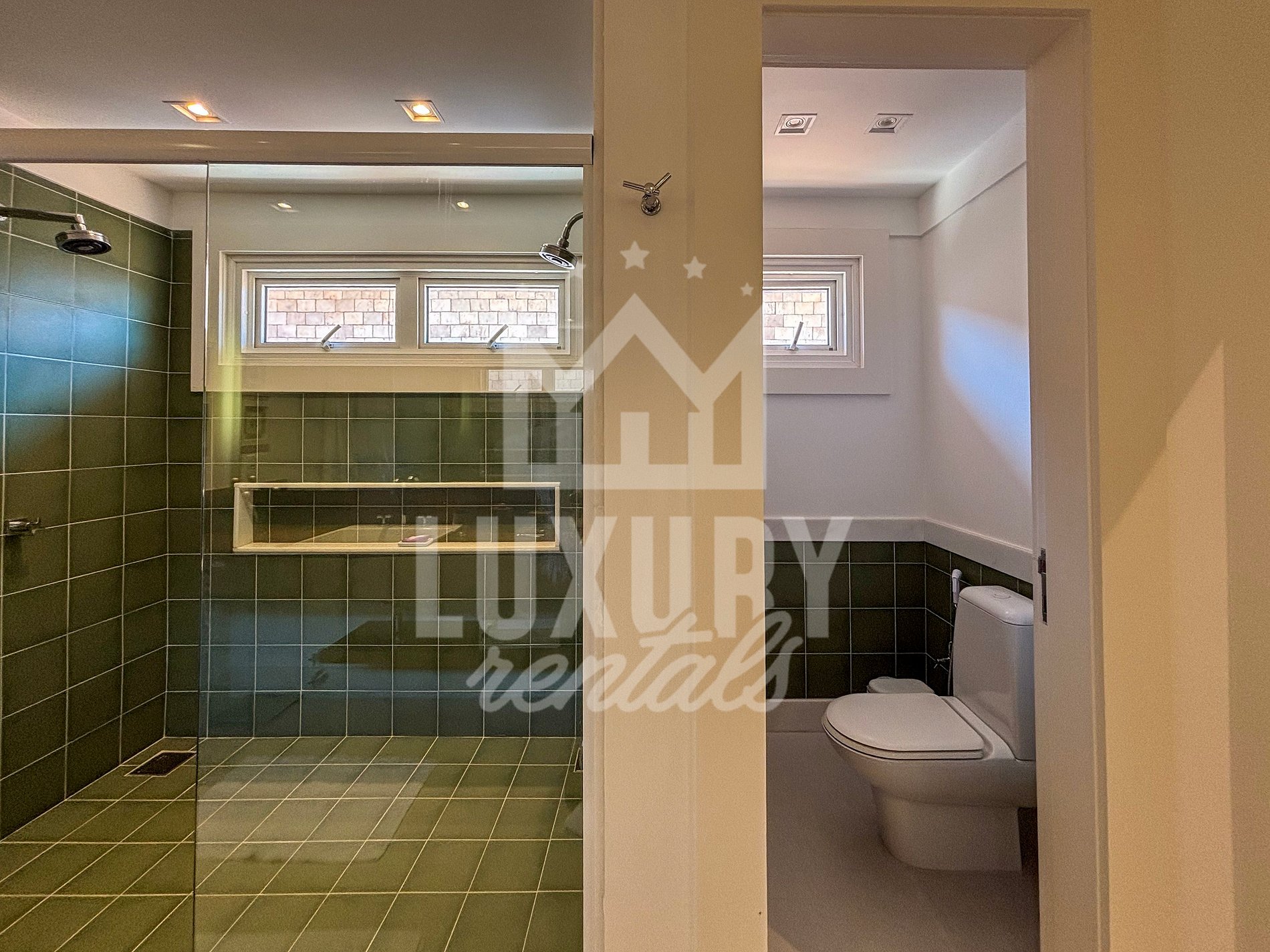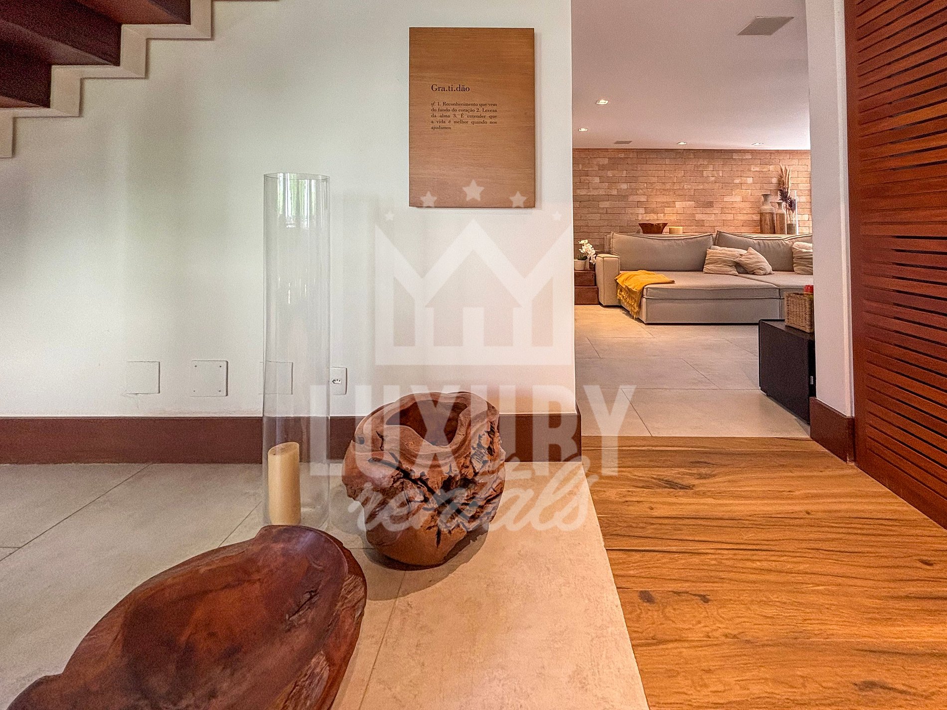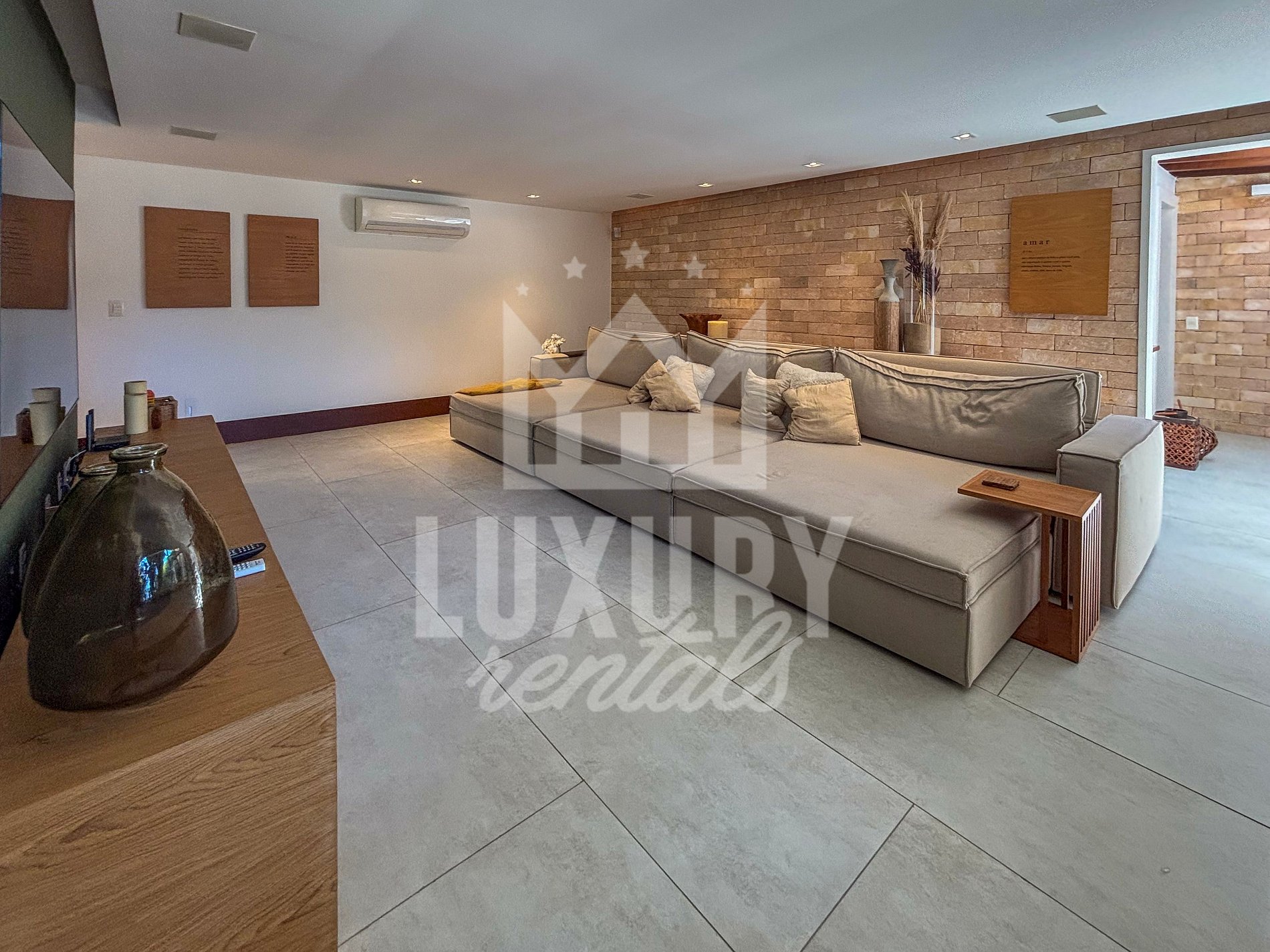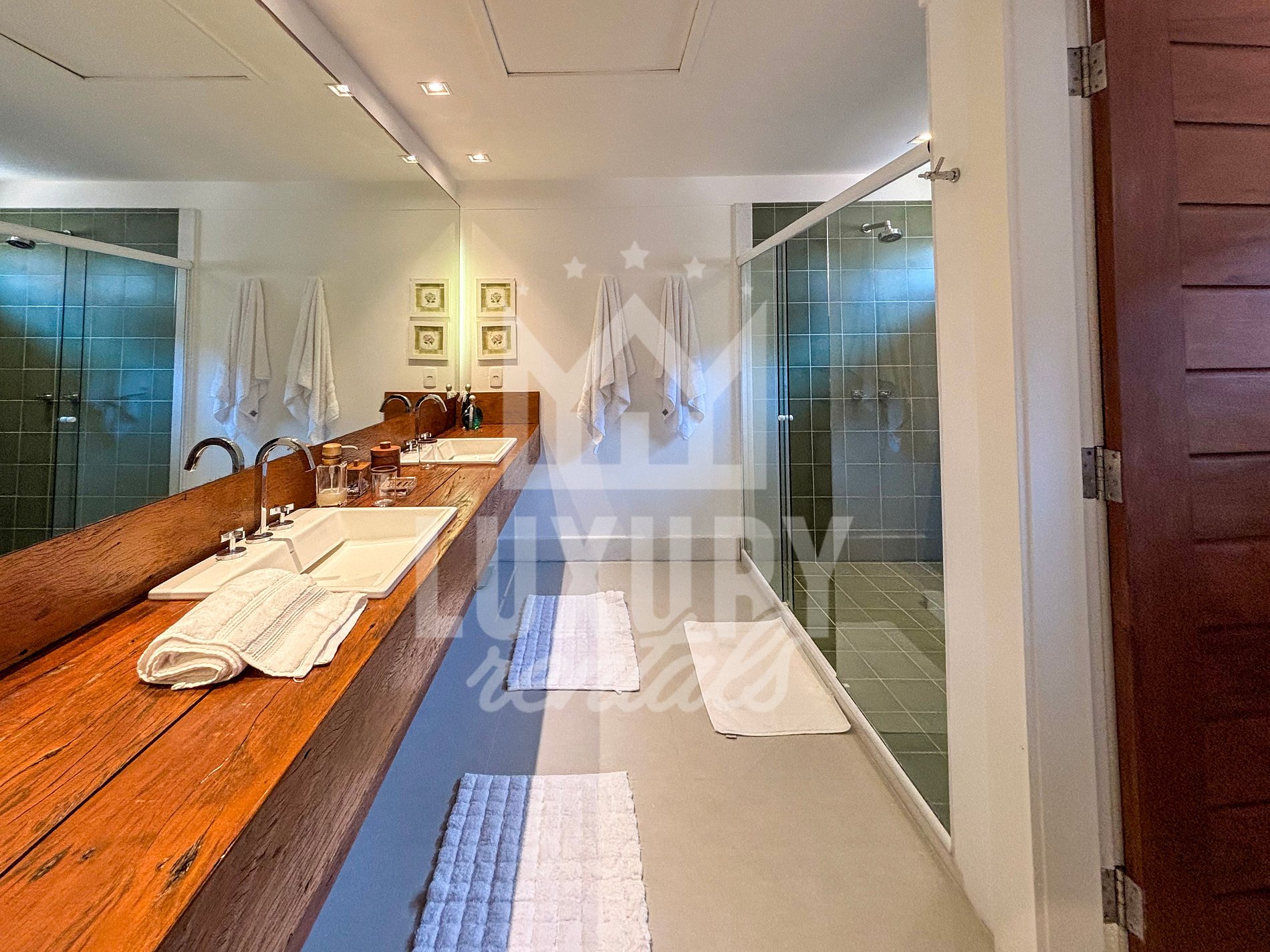 Seis suítes elegantemente decoradas oferecem o máximo em privacidade e bem-estar. Duas delas, com charmosos mezaninos, proporcionam um toque especial à hospedagem de seus convidados. A suíte master, um verdadeiro oásis particular, dispõe de um amplo closet e uma varanda privativa com uma vista para o oceano – um palco perfeito para momentos de relaxamento e contemplação.