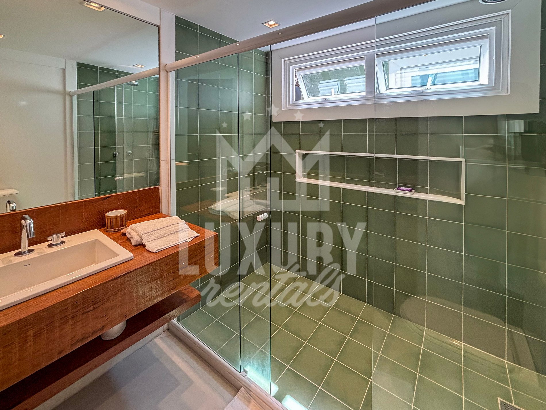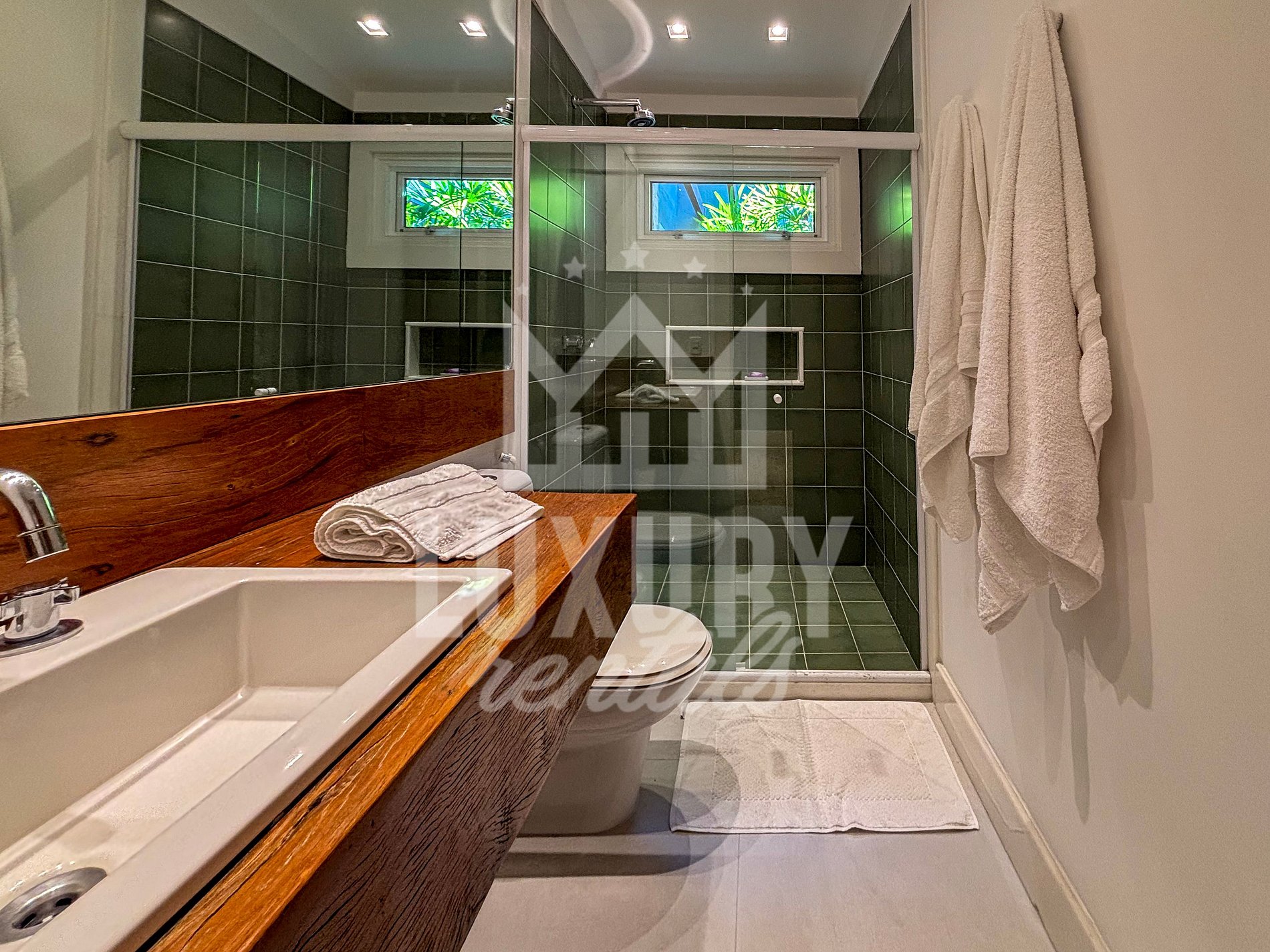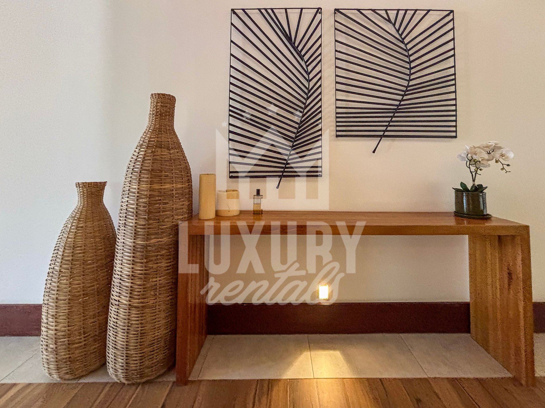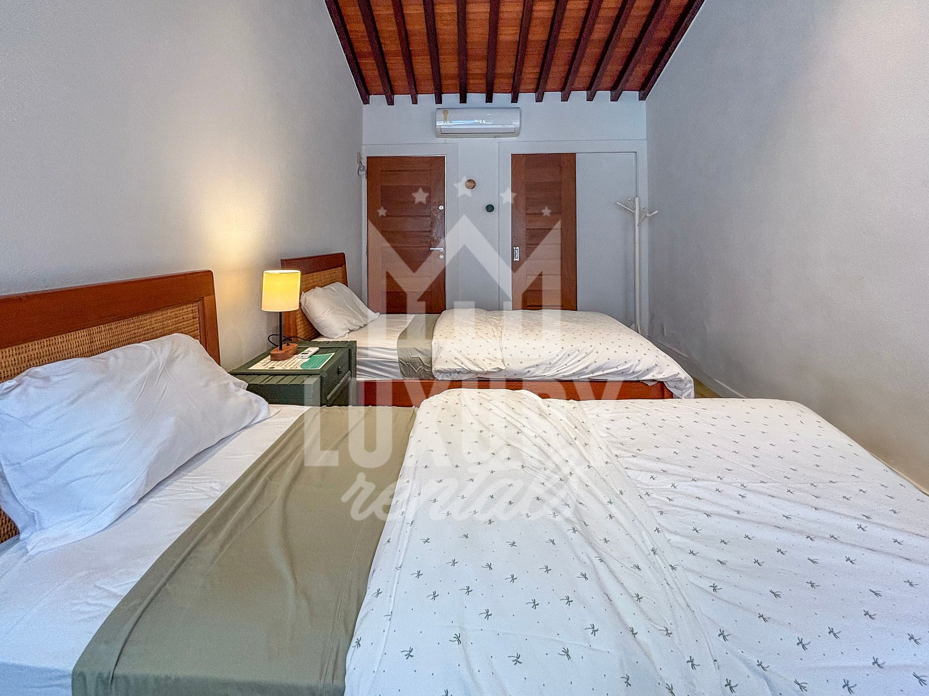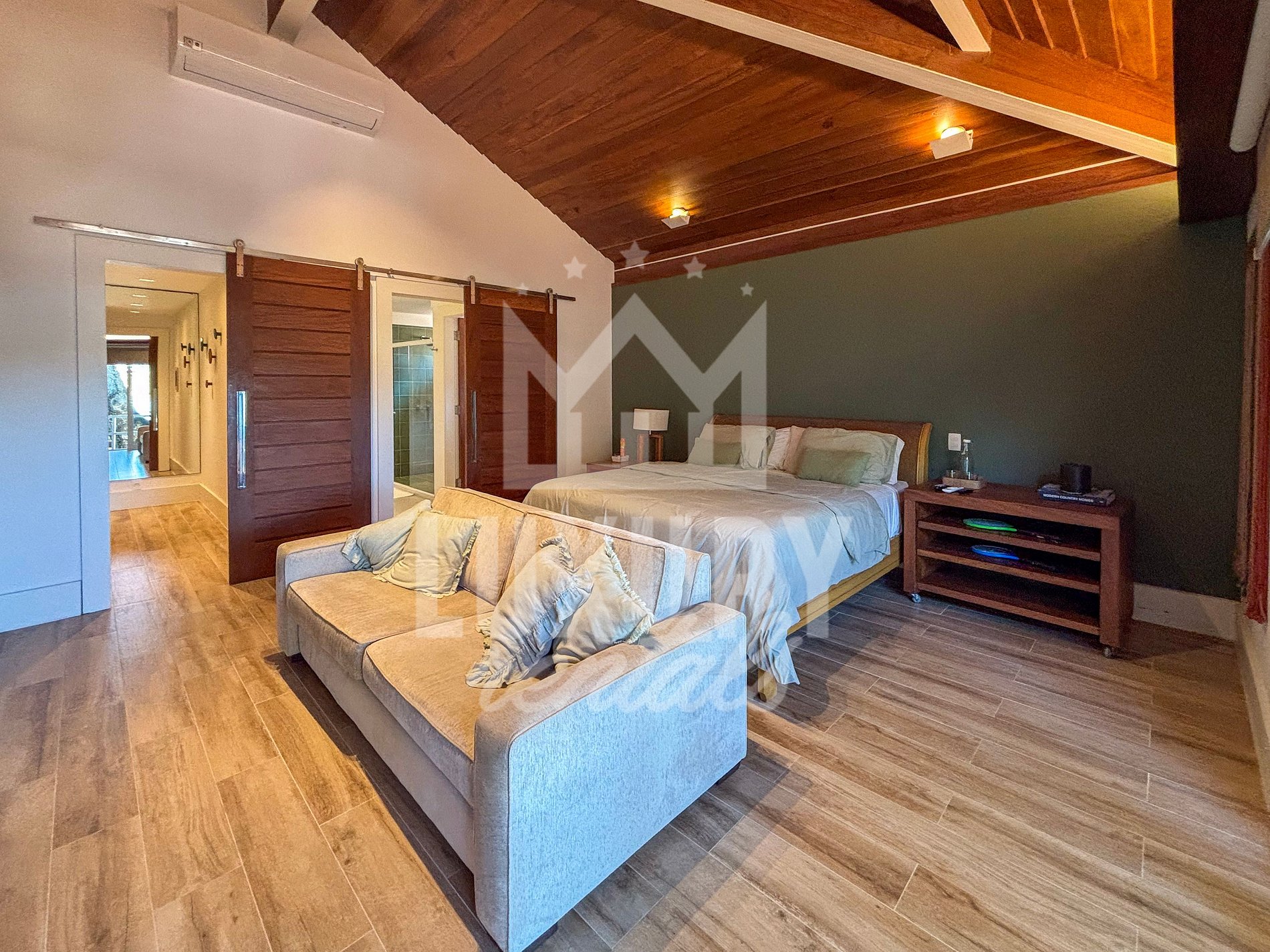 Seis suítes elegantemente decoradas oferecem o máximo em privacidade e bem-estar. Duas delas, com charmosos mezaninos, proporcionam um toque especial à hospedagem de seus convidados. A suíte master, um verdadeiro oásis particular, dispõe de um amplo closet e uma varanda privativa com uma vista para o oceano – um palco perfeito para momentos de relaxamento e contemplação.