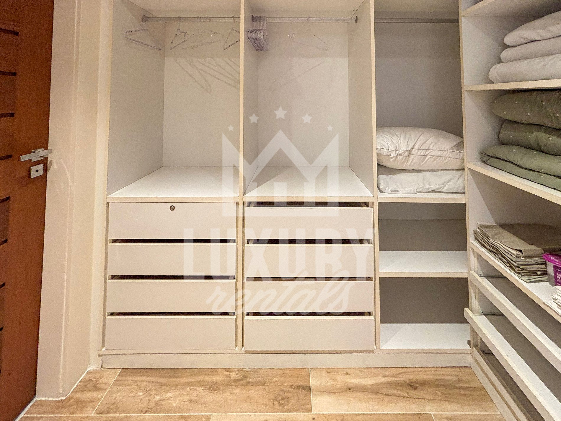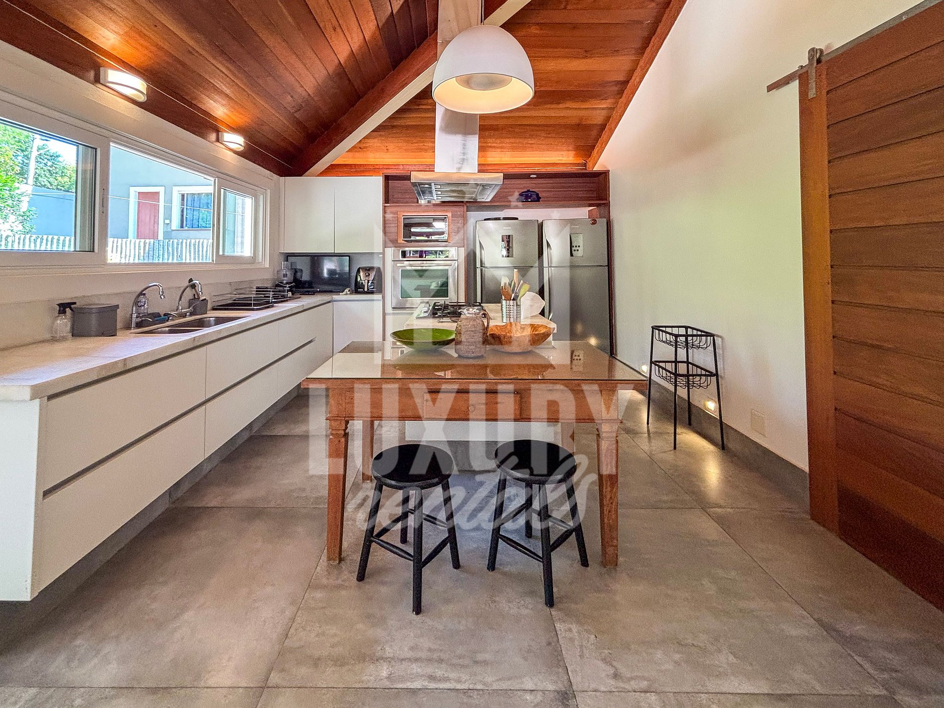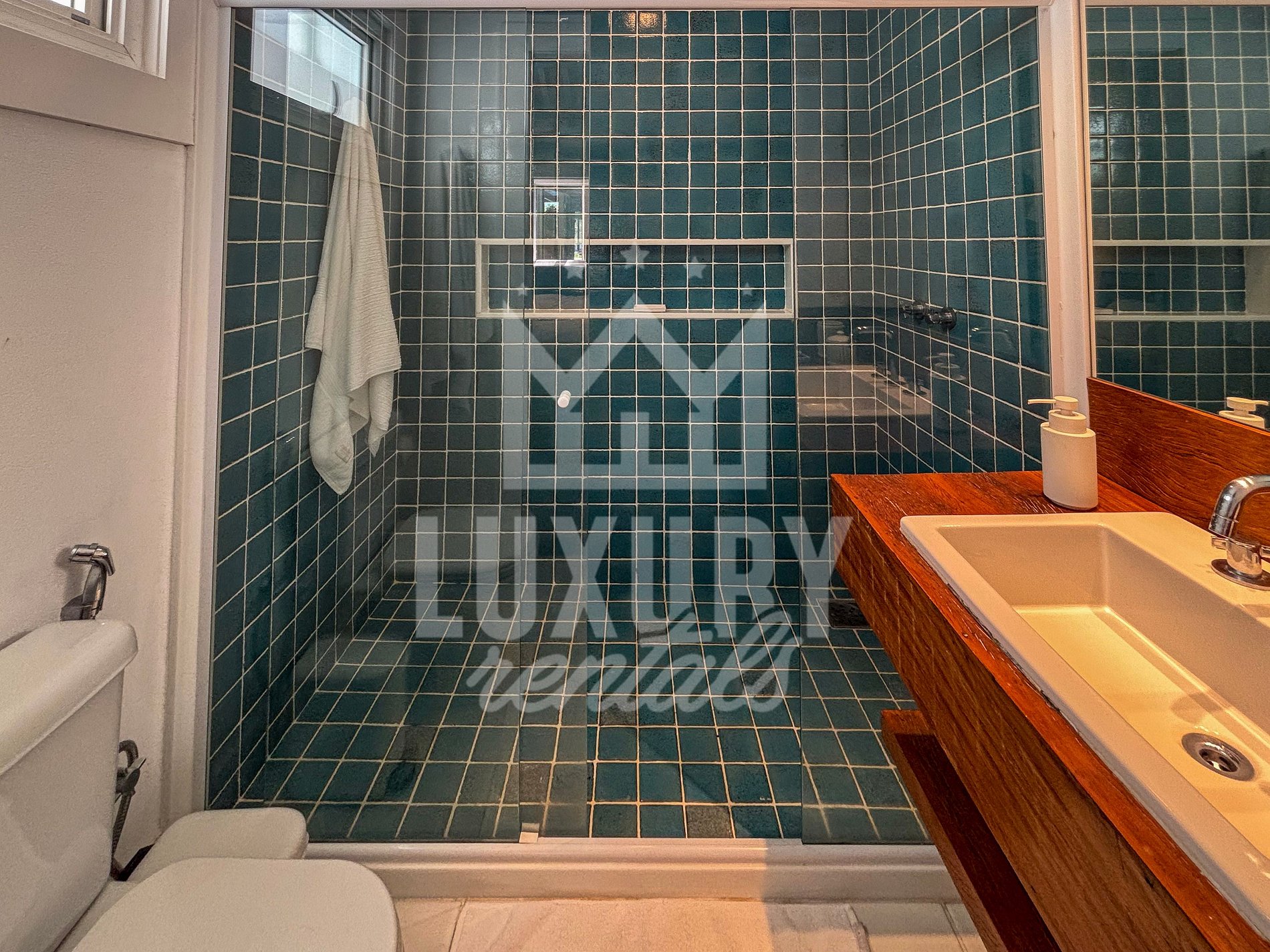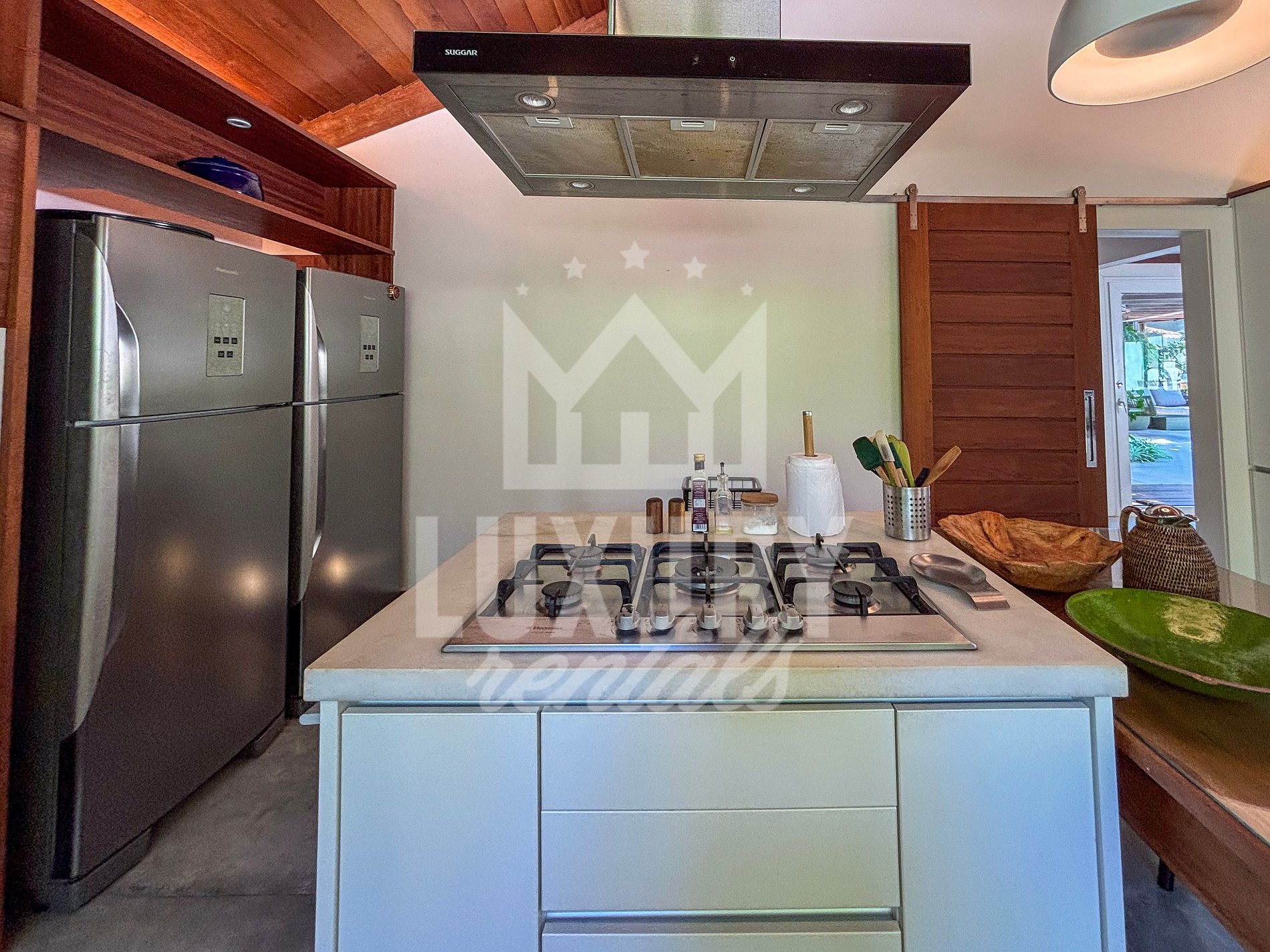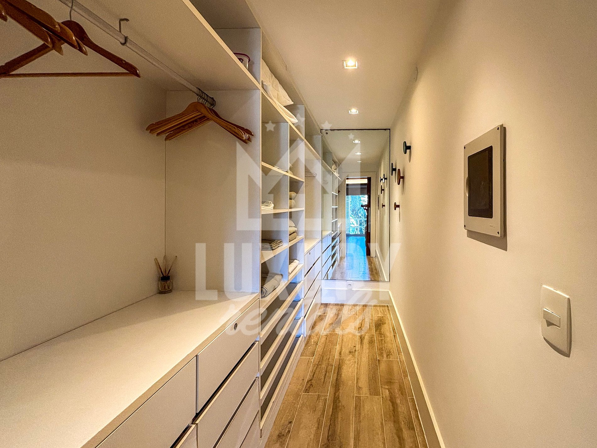Seis suítes elegantemente decoradas oferecem o máximo em privacidade e bem-estar. Duas delas, com charmosos mezaninos, proporcionam um toque especial à hospedagem de seus convidados. A suíte master, um verdadeiro oásis particular, dispõe de um amplo closet e uma varanda privativa com uma vista para o oceano – um palco perfeito para momentos de relaxamento e contemplação.