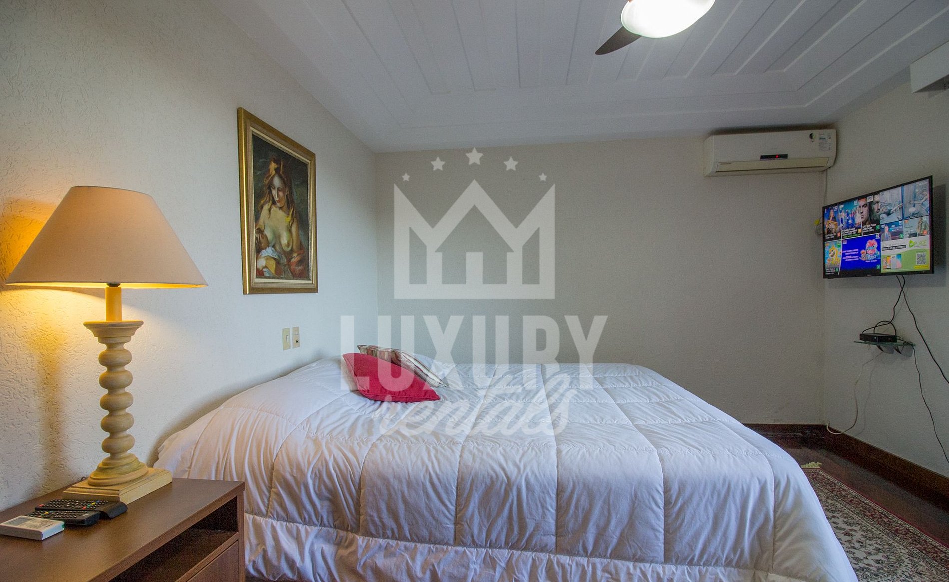 A Excelente Área Interna da Residência Vai Proporcionar Treze Quartos, sendo Seis Suítes no Andar Superior, Cinco Quartos e Duas Suítes no Subsolo, Todas Possuindo Ar Condicionado, Roupa de Cama e Banho; Duas Sala de Estar, Sala de Jantar, Cozinha com Utensílios e rede Wi-Fi que Abrange toda a Residência.