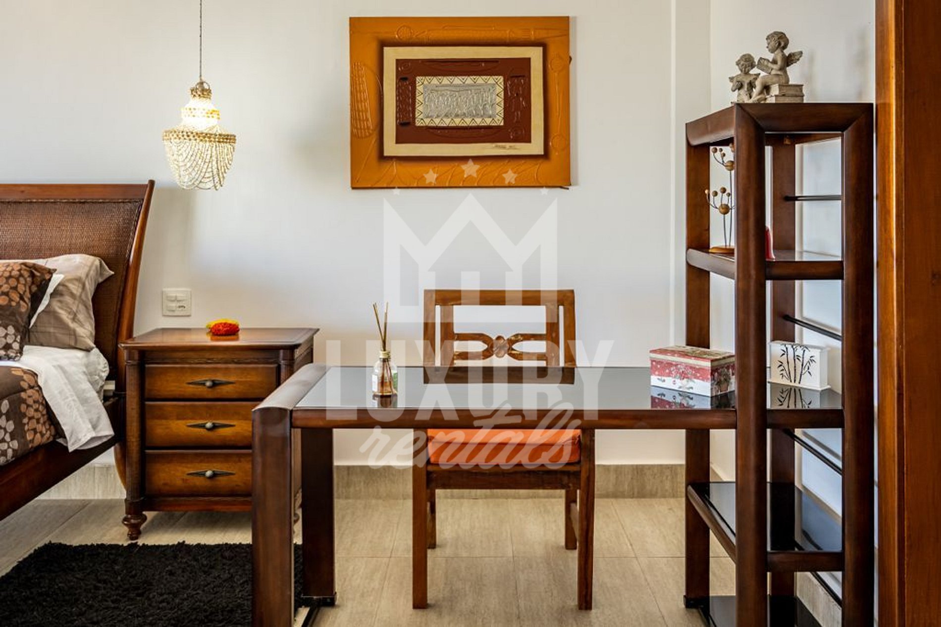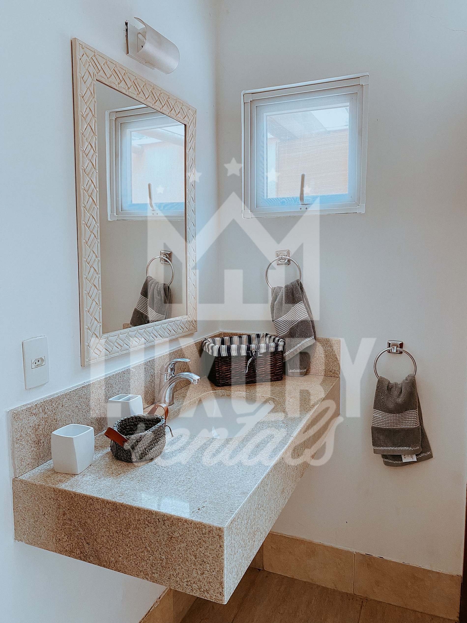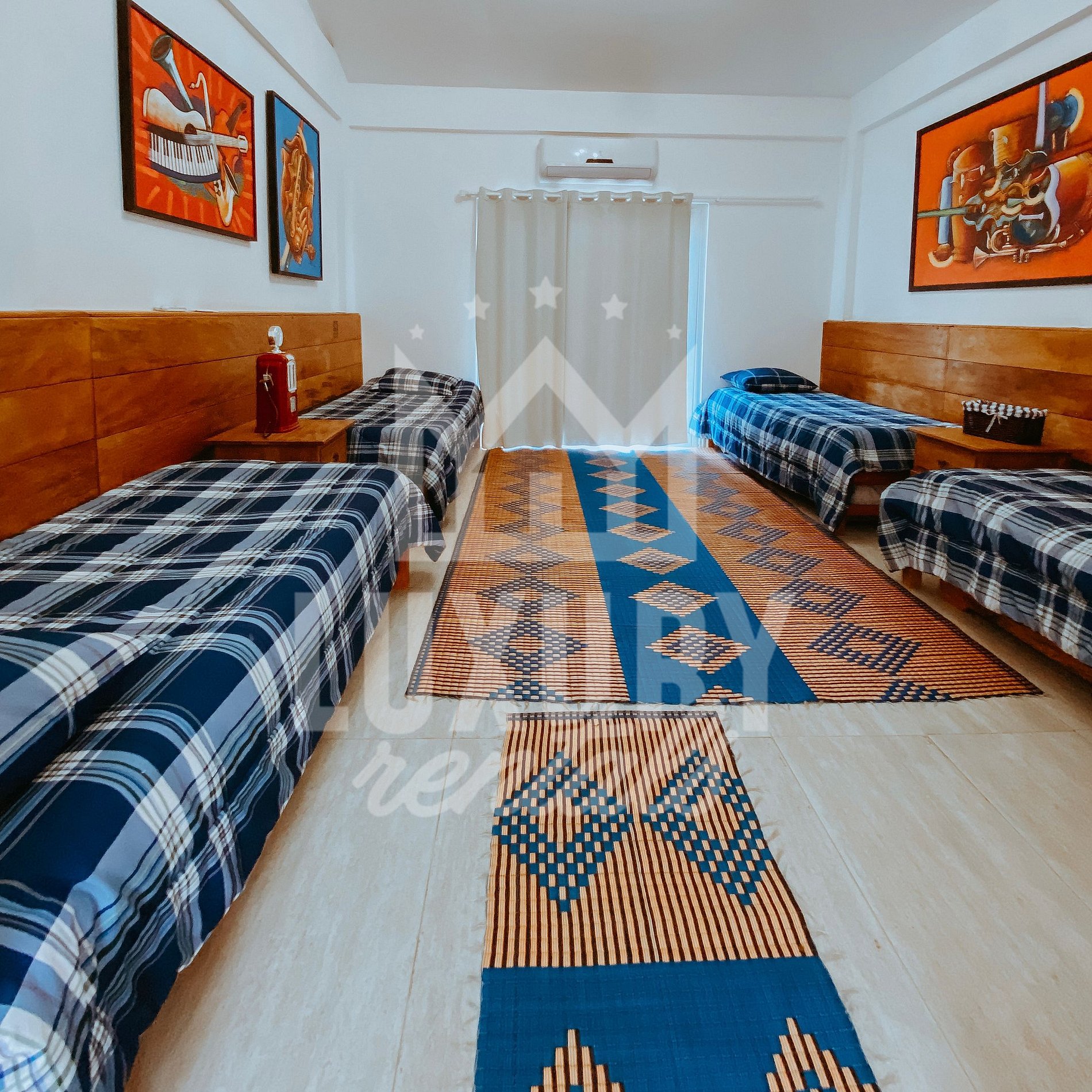 A Mansão ira Proporcionar Seis Suítes, sendo uma Suíte Máster com Varanda e uma Perfeita Vista Panorâmica da Praia de Geribá; todas com Ar Condicionado, Roupa de Cama e Banho de Alta Qualidade, além de sua Ampla Área Interna com Sala de Estar e mesa de Bilhar, Sala de Televisão, de Jantar com Vista Mar e sua Excelente Cozinha com todos os Utensílios e Rede Wi-Fi que Abrange toda Mansão.